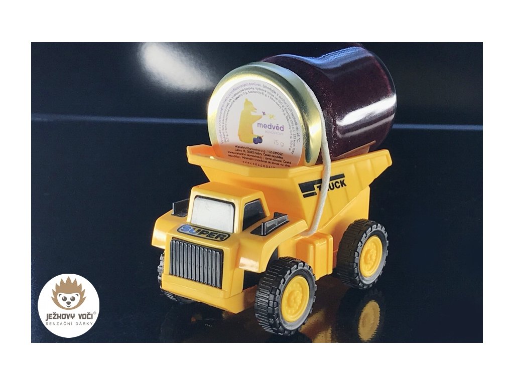 Pozor, jede žluté nákladní autíčko a veze to nejcennější - voňavý med! Hravá dekorace nebo roztomilý dárek, který potěší malé i velké milovníky sladkého světa na kolech.