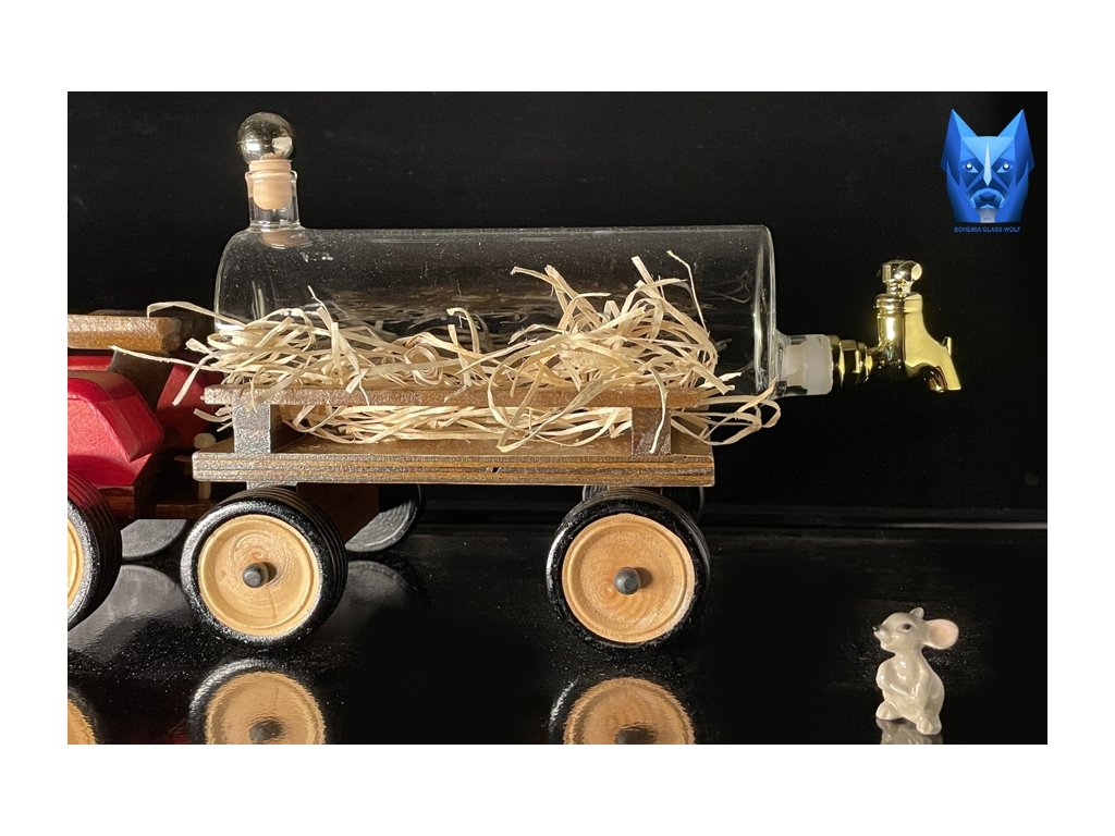 Design - Detailně zpracovaný dřevěný model traktoru s cisternou, doplněný o funkční kohoutek pro snadné čepování nápojů.