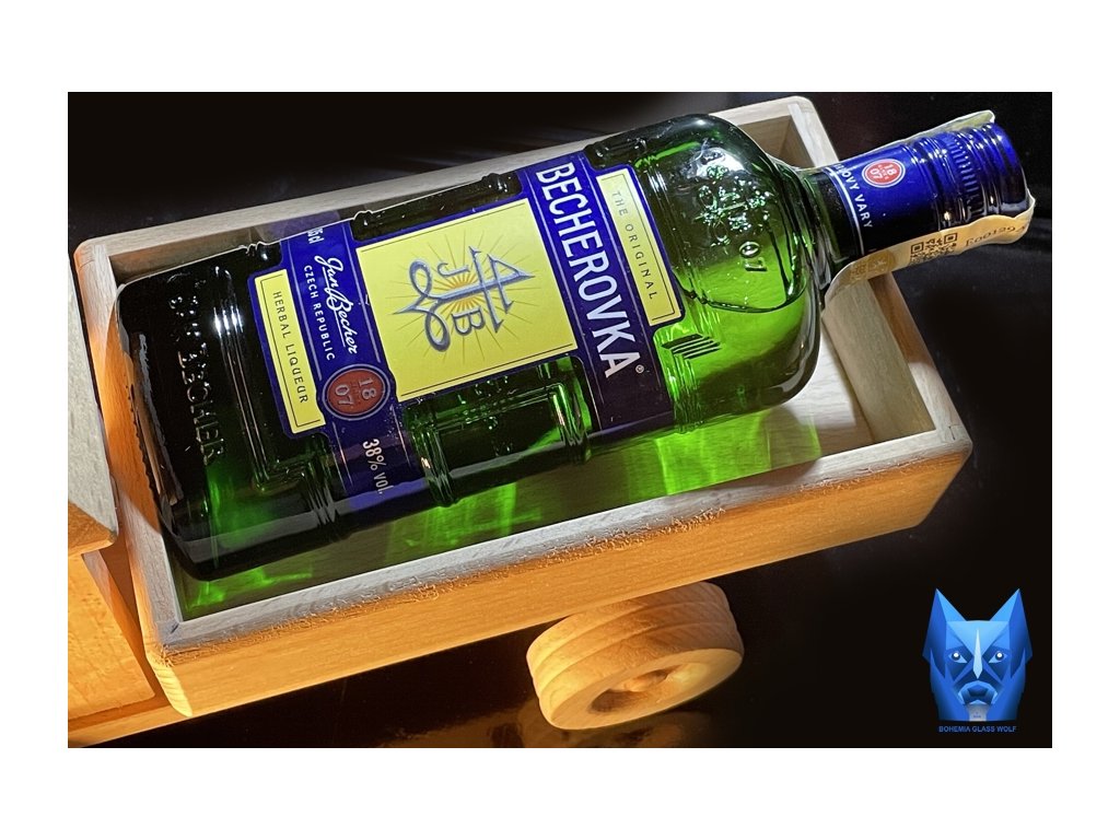 BGW - LUXUSNÍ DÁRKOVÁ LÁHEV - PŘÍRODNÍ DŘEVĚNÝ NÁKLAĎÁK - S ALKOHOLEM BECHEROVKA 38%