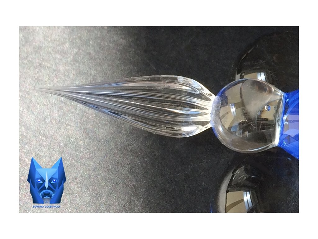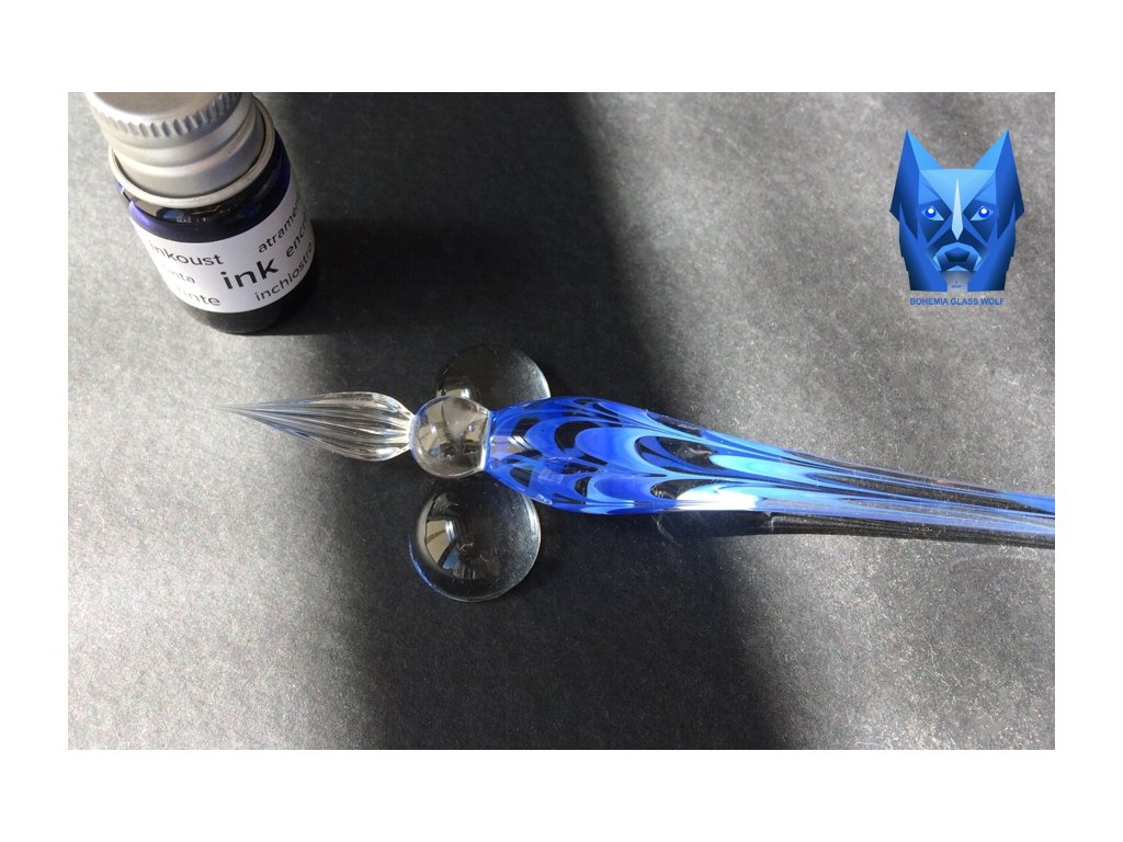 BOHEMIA GLASS WOLF - LUXUSNÍ SKLENĚNÉ PERO S MODRÝMI VLNKAMI