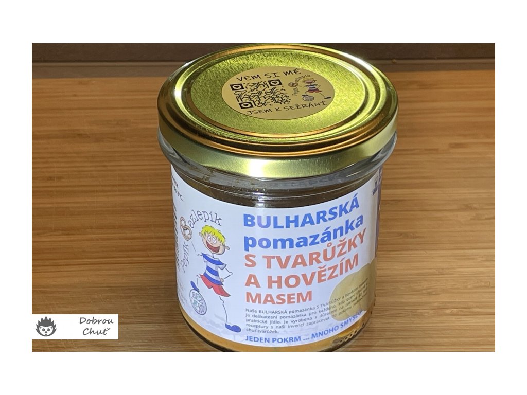 Naše BULHARSKÁ pomazánka s TVARŮŽKY a hovězím masem je delikatesní pomazánka pro každého, kdo ocení chutné a praktické jídlo. Je vyrobena s důrazem na základě 60 leté receptury s naší invencí zapracovat do pokrmu jedinečnou chuť tvarůžků.