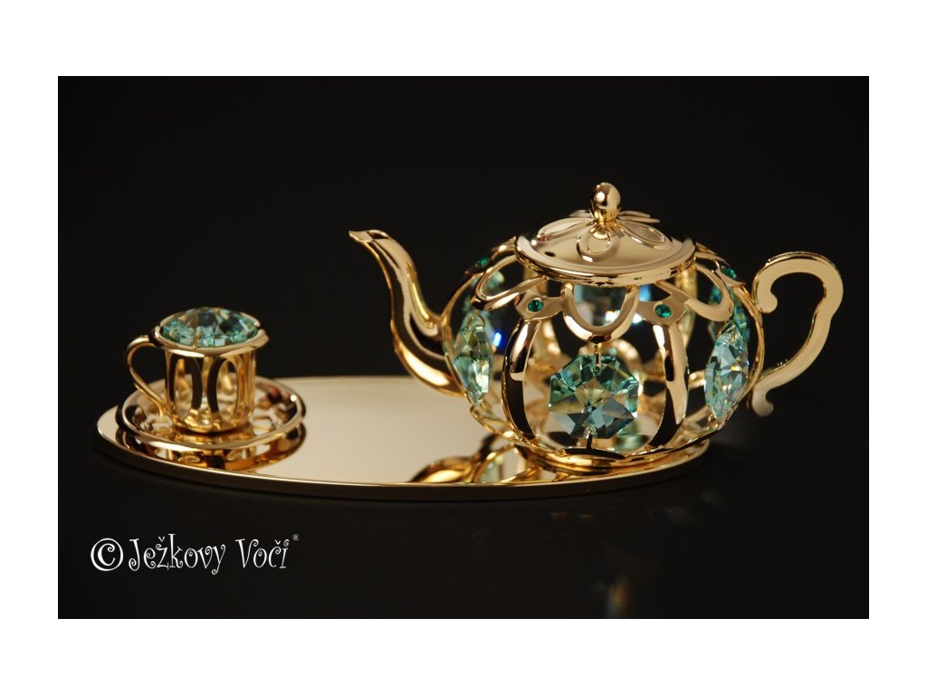 Elegantní dekorace Crystocraft - konvička a šálek je symbolem jemnosti, čistoty a nadčasové krásy. Precizně ručně vyrobená z kvalitního kovu a zdobená broušeným skleněným krystalem, který odráží světlo s jemným leskem.