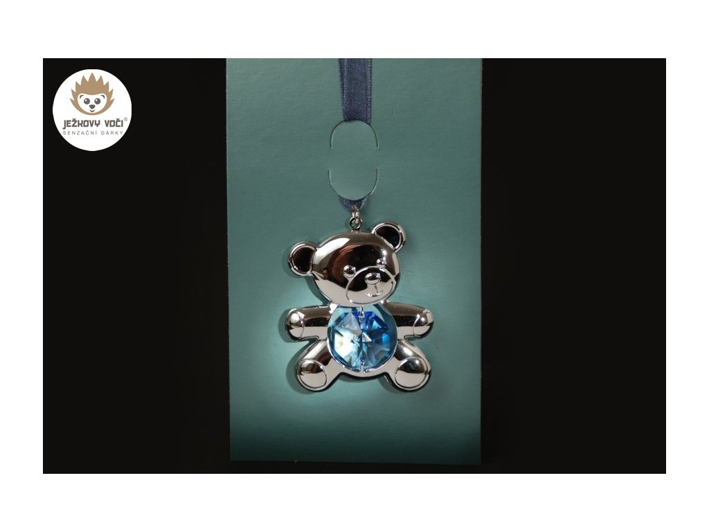 DEKORACE CRYSTOCRAFT SE SKLENĚNÝM KRYSTALEM - STŘÍBRNÝ MEDVÍDEK S MODRÝM KRYSTALEM - KRÁSA, KTERÁ PŘETRVÁ