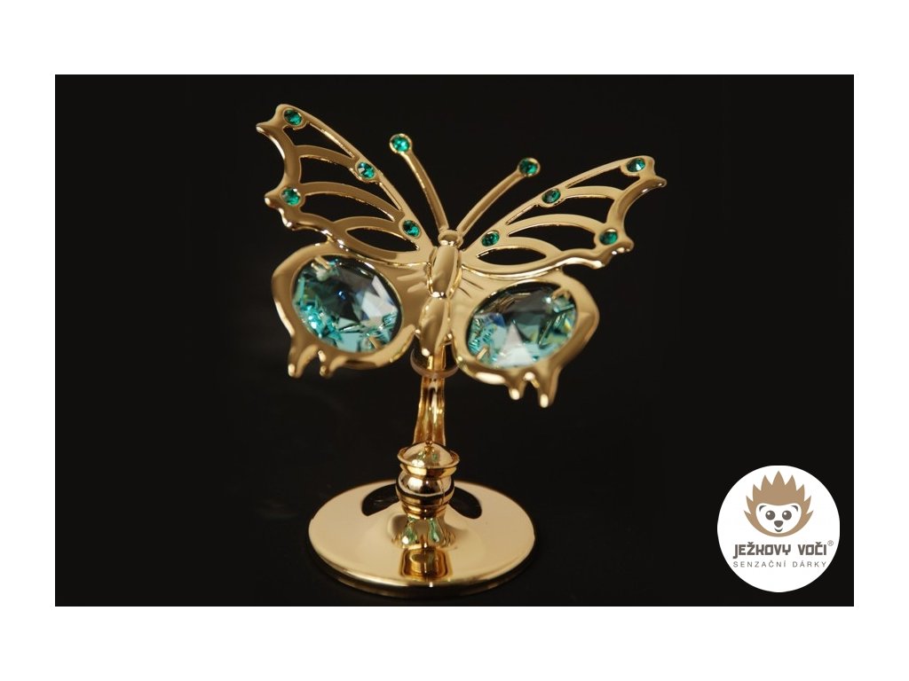 DEKORACE CRYSTOCRAFT SE SKLENĚNÝM KRYSTALEM - ZLATÝ MOTÝL SE ZELENÝM KRYSTALEM