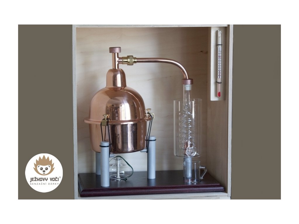 Jemné řemeslné zpracování a ušlechtilý materiál dělají z tohoto měděného destilačního přístroje nejen funkční nástroj, ale i skutečný klenot každé domácí palírny. Měď je po staletí považována za ideální kov pro destilaci - dokonale vede teplo a přirozeně přispívá k čistotě výsledného destilátu.