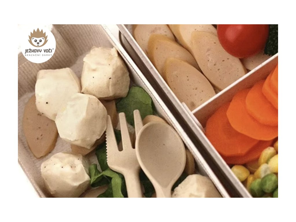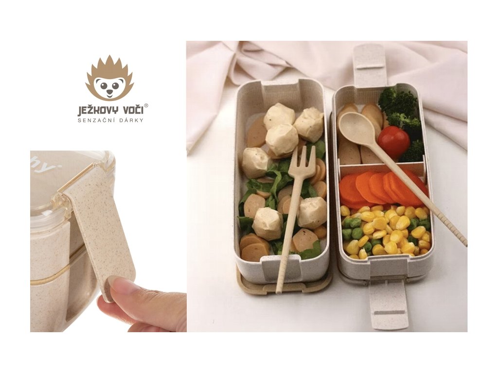 - FUNKČNÍ PŘÍBORY - jsou také součástí sady. Ekologické příbory, vyrobené z pšeničné slámy . lžíce a vidlička jsou praktické a odolné a zvlněný okraj vidličky slouží jako nůž, což zvyšuje funkčnost sady. Příbory jsou kompaktní a snadno se vejdou do krabičky na oběd, takže jsou vždy po ruce, když je potřebujete. To znamená, že nemusíte nosit samostatné příbory, což je ještě lepší pohodlí při používání této sady.