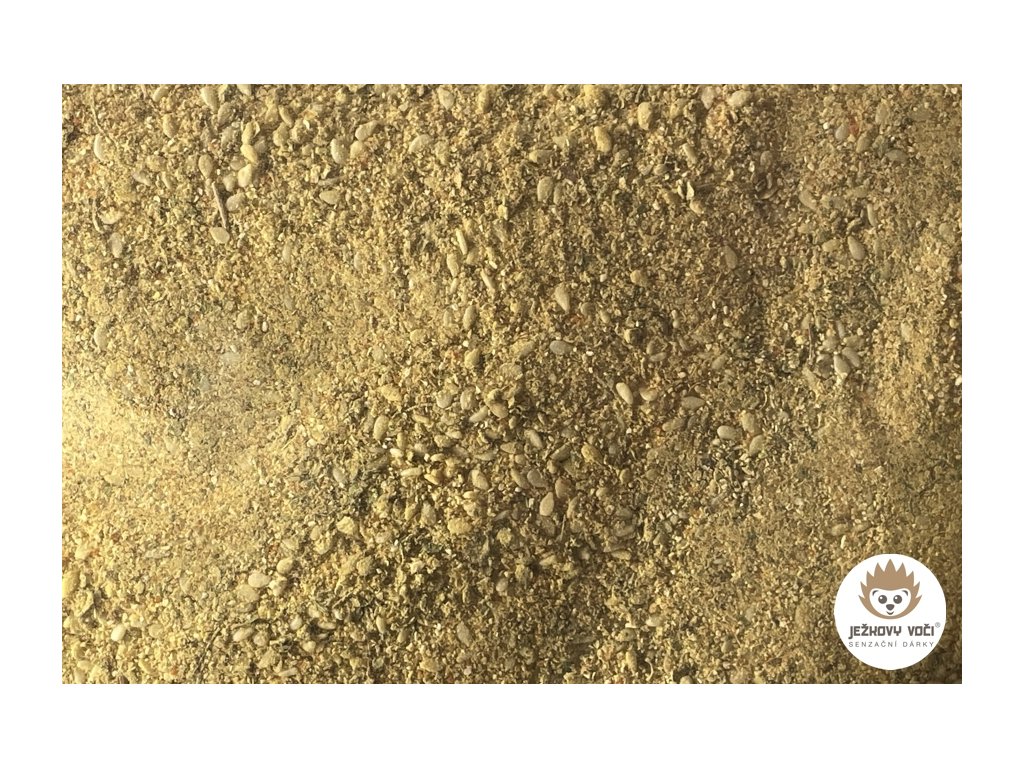 Složení: sůl ( max. 32% ), směs sušené zeleniny ( celer, mrkev, petržel ), sezam, koření ( kurkuma, pepř bílý, pepř zelený, majoránka, petržel, paprika, kmín, koriandr, kardamom, česnek ).