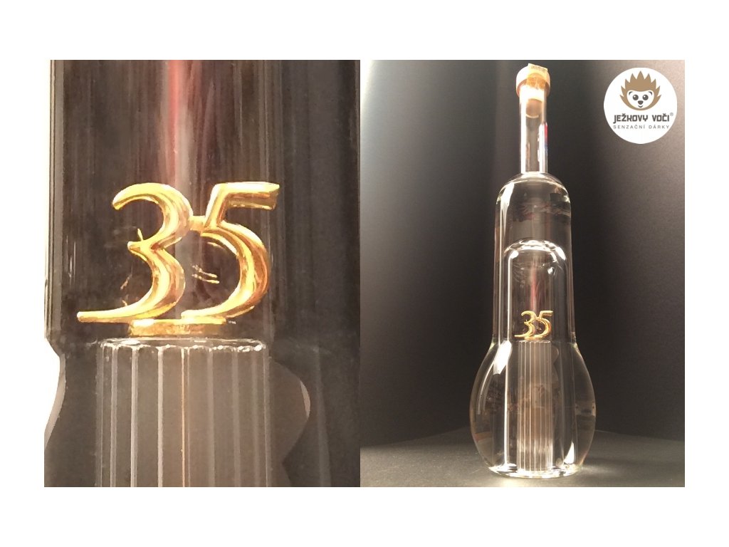 Jubilejní dárková láhev se zlatou číslicí 35 je elegantním a osobitým dárkem, který dokonale podtrhne výjimečnost oslavy. Skleněná láhev o objemu 0,35 l je naplněna 40% švestkovým destilátem a je krásným a kvalitním designovým kouskem, který spojuje eleganci a kvalitní řemeslné zpracování. Je to skvělý způsob, jak oslavit významné životní jubileum nebo jinou důležitou událost. Tento stylový kousek nejenže přinese radost svému majiteli, ale bude také krásným a nezapomenutelným vzpomínkovým předmětem na daný okamžik. Ideální pro ty, kteří si potrpí na kvalitní detaily a jedinečné dárky.