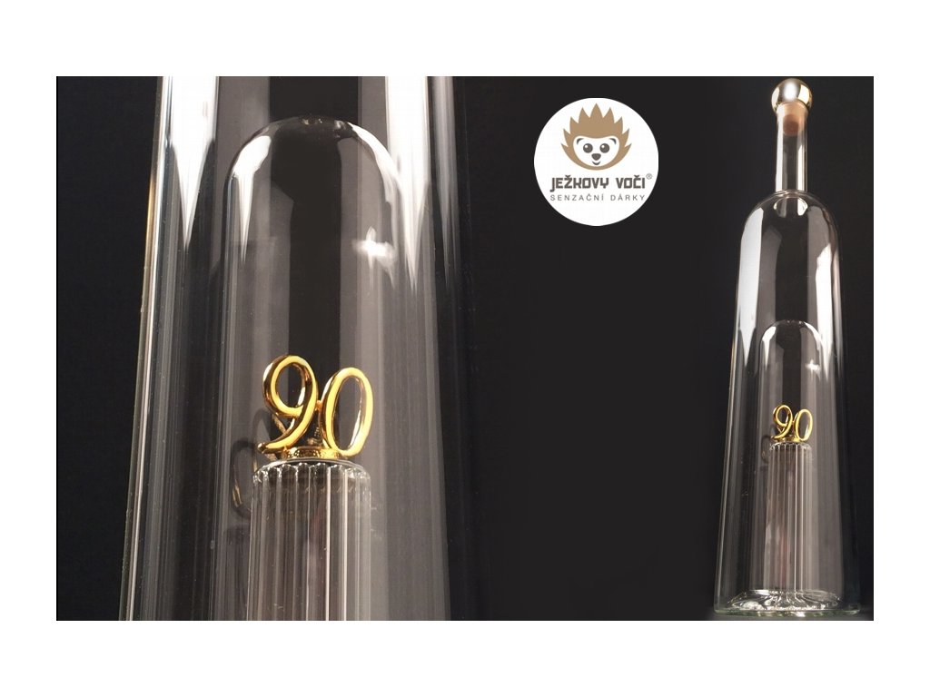 Jubilejní dárková láhev na alkohol se zlatou číslicí 90 je elegantním a osobitým dárkem, který dokonale podtrhne výjimečnost oslavy. Skleněná láhev o objemu 0,35 l je krásným a kvalitním designovým kouskem, který spojuje eleganci a kvalitní řemeslné zpracování. Je to skvělý způsob, jak oslavit významné životní jubileum nebo jinou důležitou událost. Tento stylový kousek nejenže přinese radost svému majiteli, ale bude také krásným a nezapomenutelným vzpomínkovým předmětem na daný okamžik. Ideální pro ty, kteří si potrpí na kvalitní detaily a jedinečné dárky.
