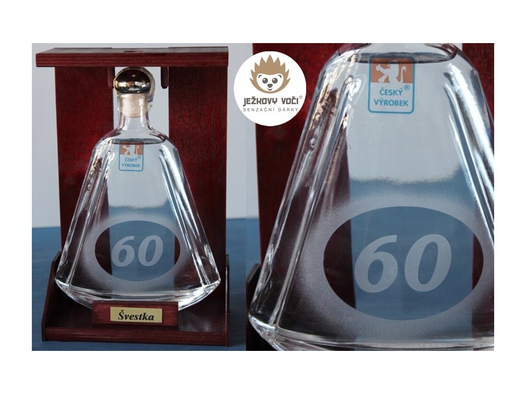 Skleněná kráska s pískovaným věkem, která na první pohled říká: " Tady se slaví stylově! " Uchycená ve dřevěném stojánku, aby se náhodou při oslavě neskutálela. Uvnitř? Poctivá 40% švestka - žádný kompot, ale tekutý důkaz, že s věkem přichází síla, chuť a občas i lehké pálení (v krku, ne na srdci). Perfektní dárek pro každého oslavence, který má za sebou pár let, ale pořád se nebojí zvednout sklenku (nebo dvě). Na zdraví, na roky - a hlavně s úsměvem!