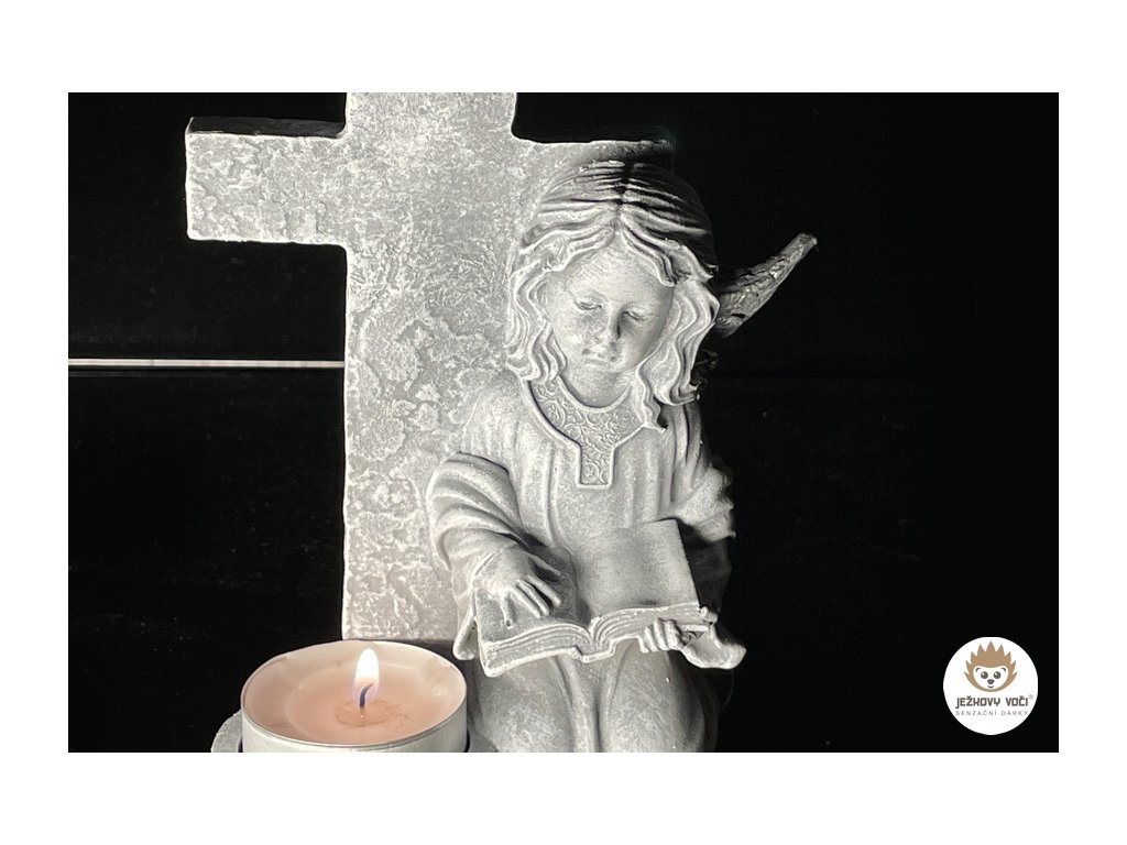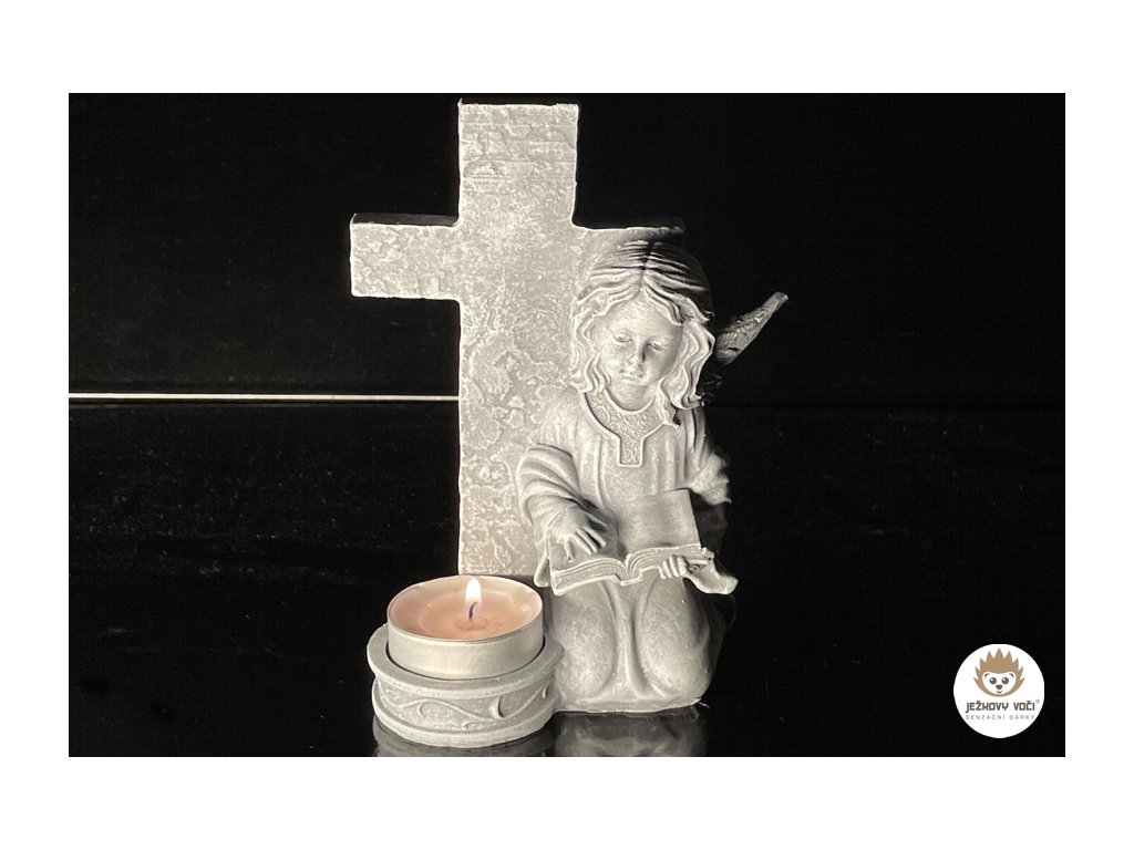KLEČÍCÍ ANDĚL S DRŽÁKEM NA ČAJOVOU SVÍČKU