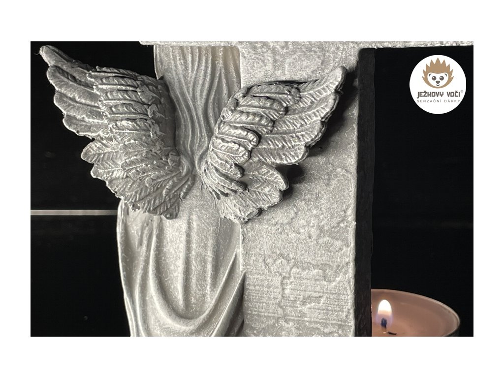 Tato jemně zpracovaná dekorace zobrazuje anděla klečícího v tiché modlitbě vedle kříže, s knihou v rukou, která symbolizuje božskou moudrost. Držák na čajovou svíčku po jeho boku umožňuje, aby teplé světlo svíčky osvětlovalo scénu, čímž vytváří atmosféru klidu a duchovní harmonie. Tento ušlechtilý kousek je ideálním doplňkem pro ty, kteří hledají vnitřní mír a chtějí do svého domova vnést symboly víry a naděje.