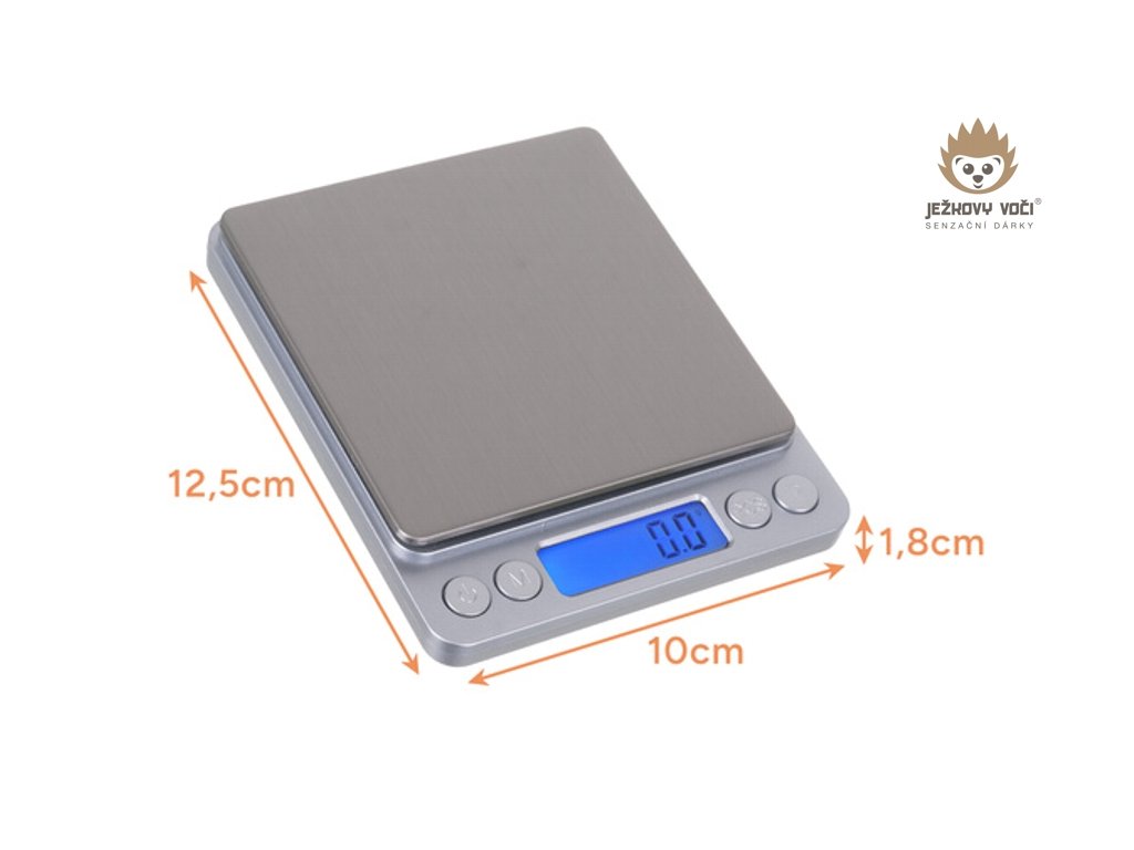 - Široký rozsah měření 0,1 g–2000 g – univerzální použití v kuchyni, laboratoři, klenotnictví