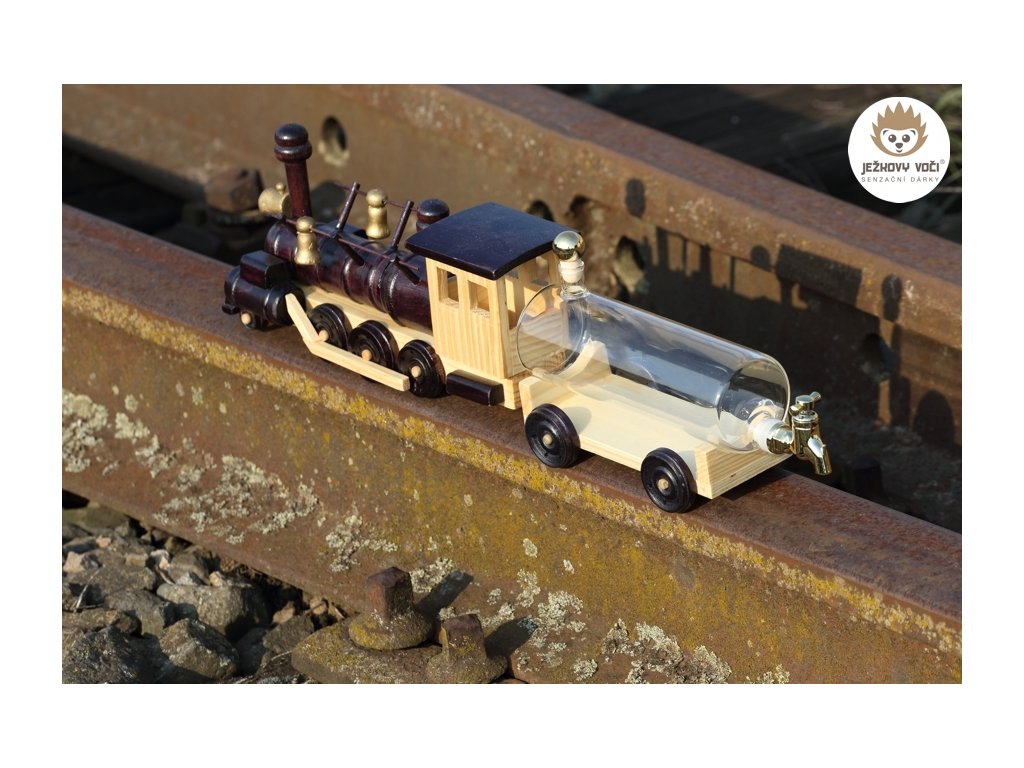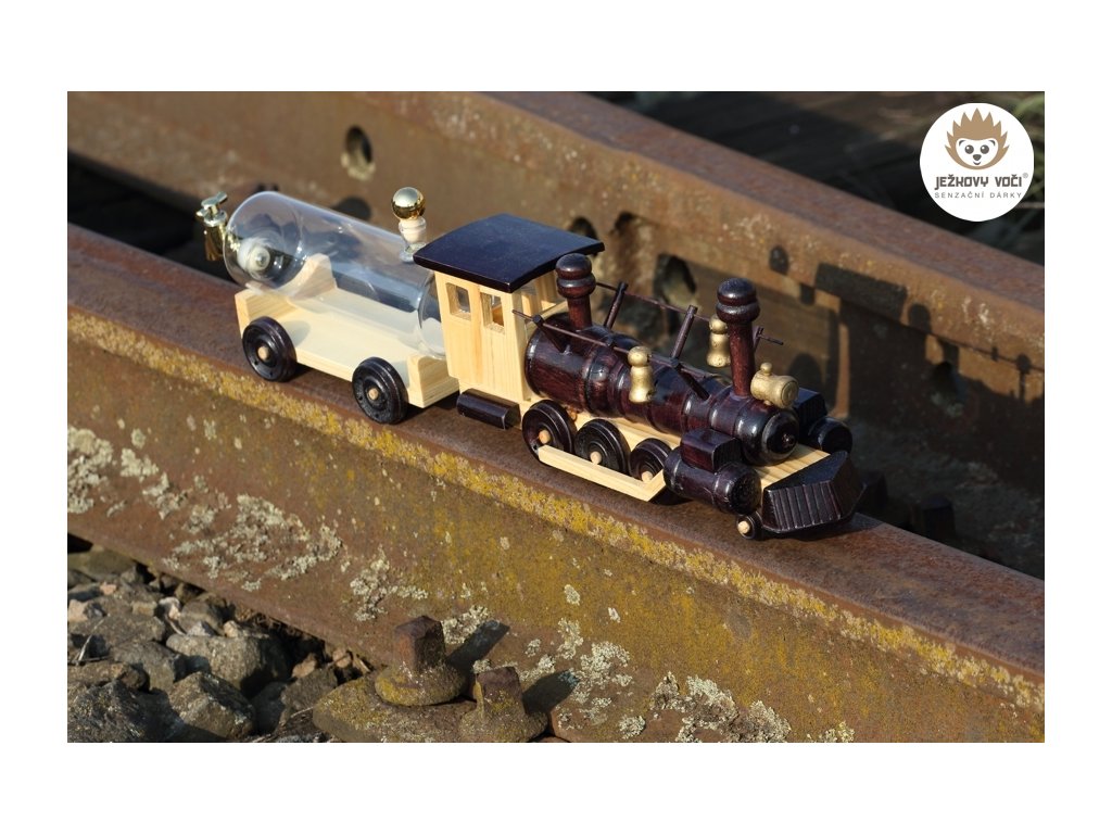 LUXUSNÍ DÁRKOVÁ LÁHEV - DŘEVĚNÁ LOKOMOTIVA S CISTERNOU - BEZ ALKOHOLU