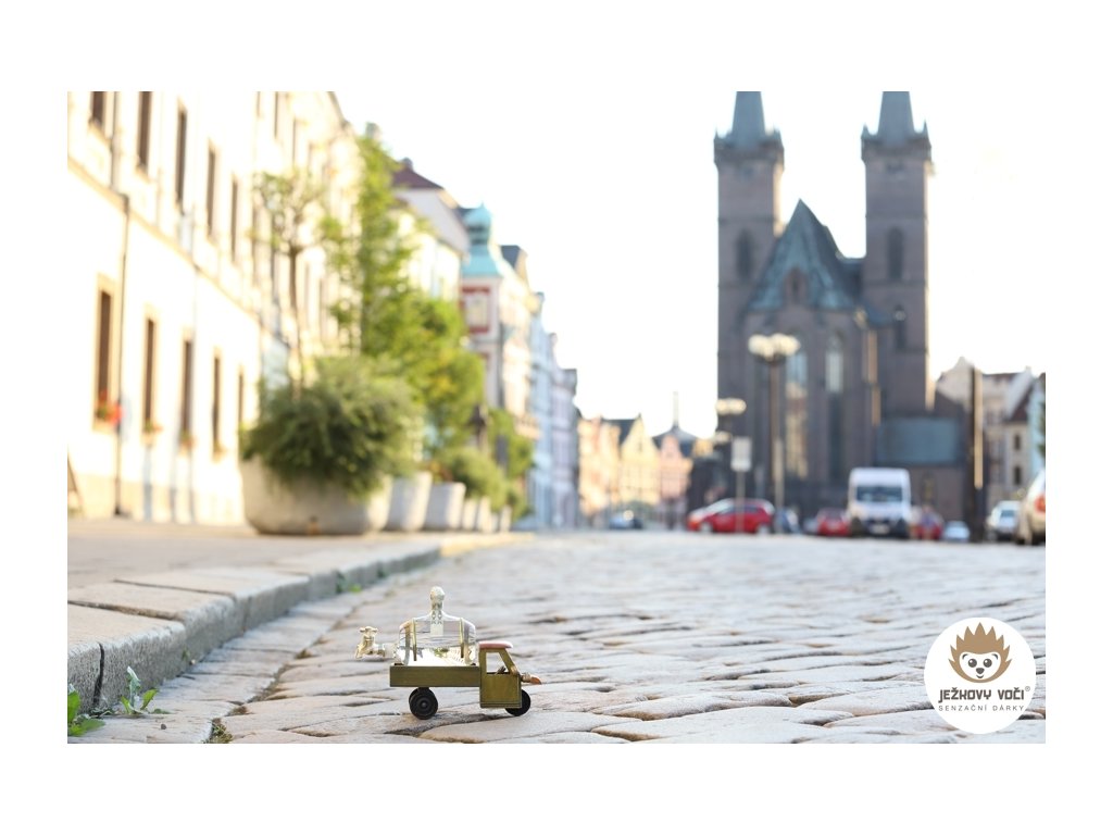 LUXUSNÍ DÁRKOVÁ LÁHEV - DŘEVĚNÉ AUTO APE - S ALKOHOLEM 40% ŠVESTKA