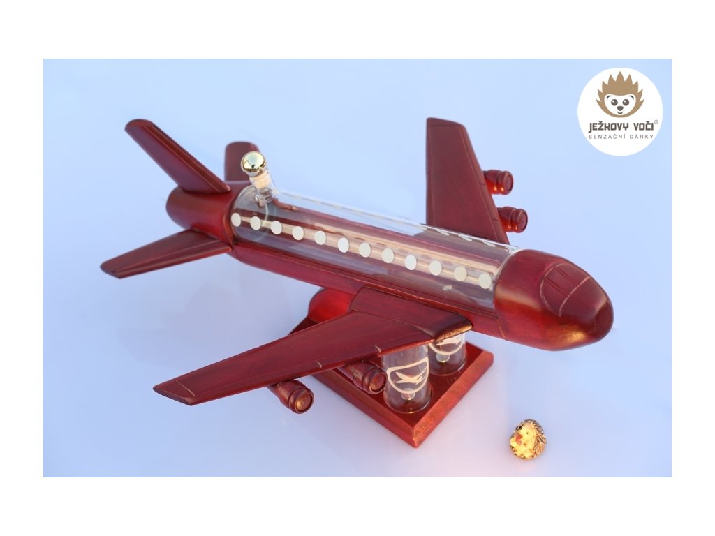 LUXUSNÍ DÁRKOVÁ LÁHEV - DŘEVĚNÉ DOPRAVNÍ LETADLO JET A DVĚ ODLIVKY - BEZ ALKOHOLU