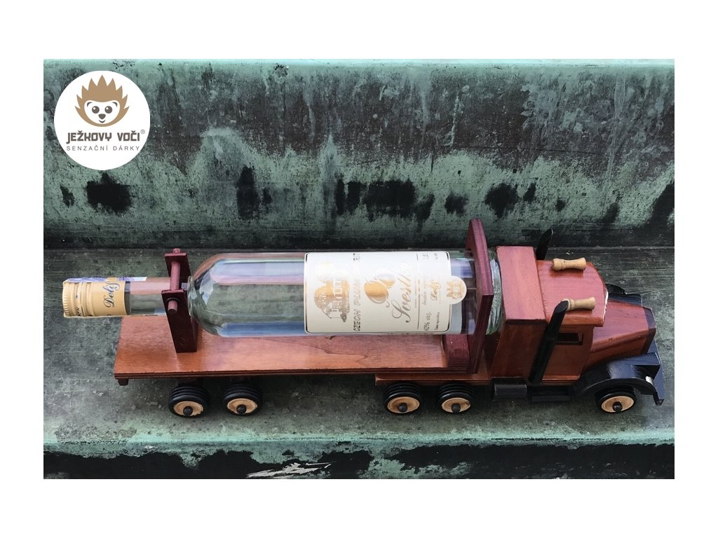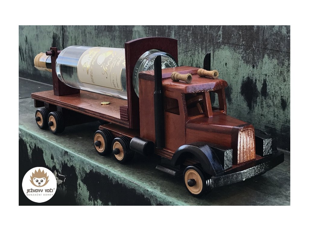 Jestli vás lákají dálky, tak nasedněte, zapněte si pásy a připravte se na divokou jízdu s tímto tahačem ! Dřevěný kamion s lahví o objemu 0,5 l naplněnou 40% švestkou je originálním a praktickým dárkem, který potěší nejen profesionální řidiče kamionů.