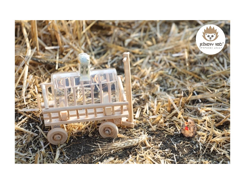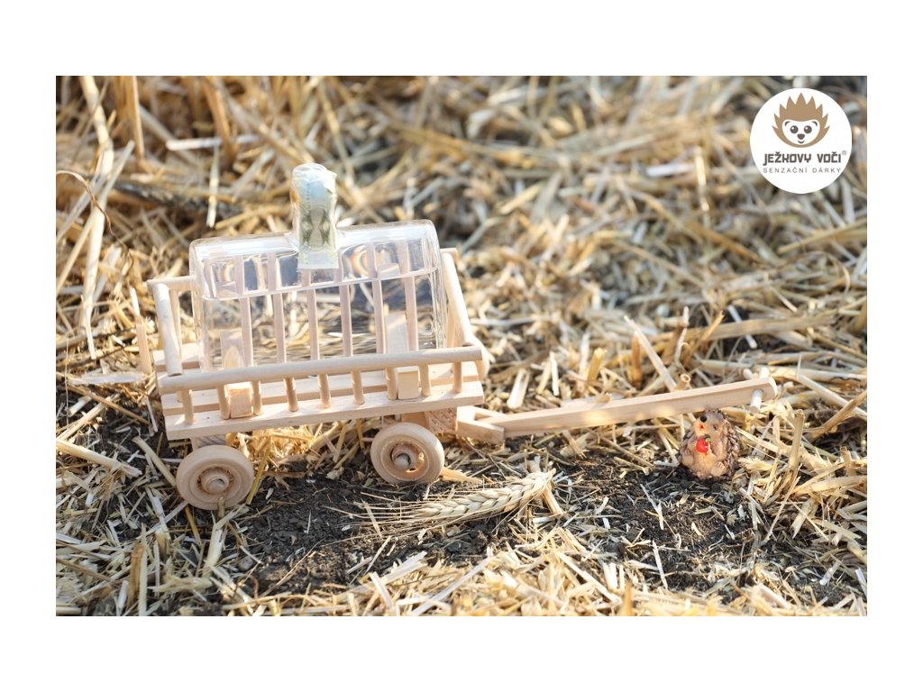 Dřevěný vozík známý také jako žebřiňák se skleněnou cisternou o objemu 0.2 l je originálním a stylovým dárkem, který potěší milovníky tradičních řemesel i sběratele unikátních předmětů.