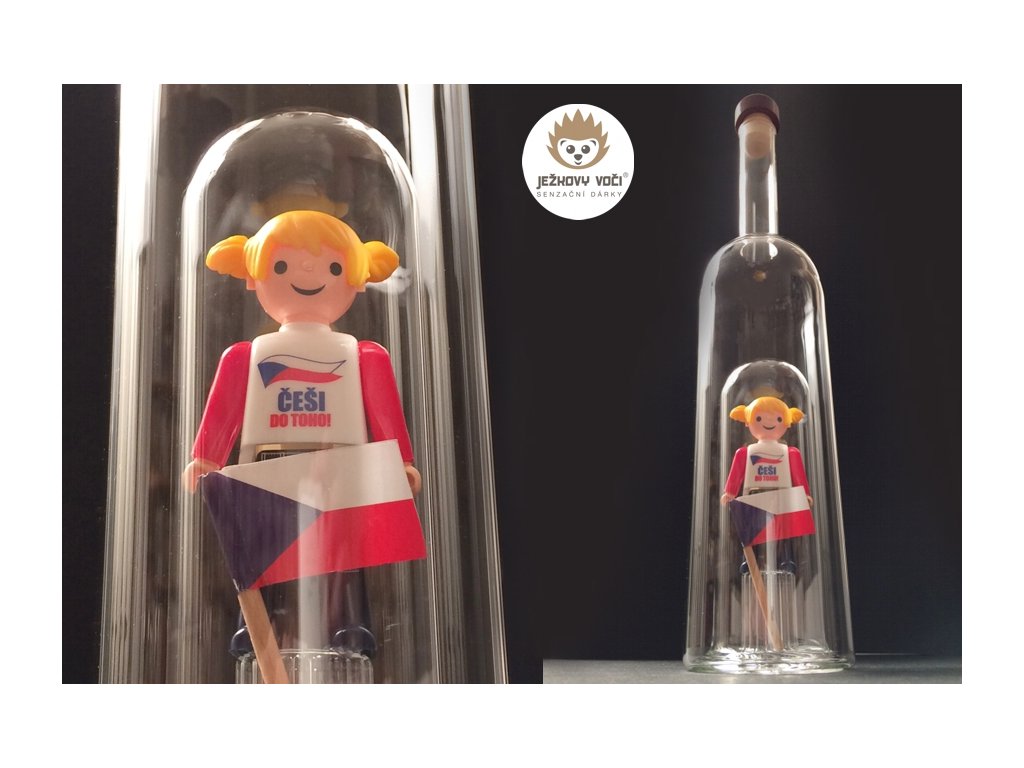 Tato jedinečná skleněná láhev o objemu 0,35 l je dokonalým dárkem pro všechny hrdé fanoušky! Uvnitř láhve se nachází detailně zpracovaná postavička fanynky s českou vlajkou a nápisem "Češi do toho", která symbolizuje vášeň a podporu našim sportovcům. Spojení elegantního designu láhve s fanouškovskou tematikou vytváří originální suvenýr, který rozproudí každou fandící atmosféru. Ať už na zápase, doma nebo jako dárek pro pravého patriota. Tato láhev přináší kousek českého nadšení kamkoliv ji postavíte!