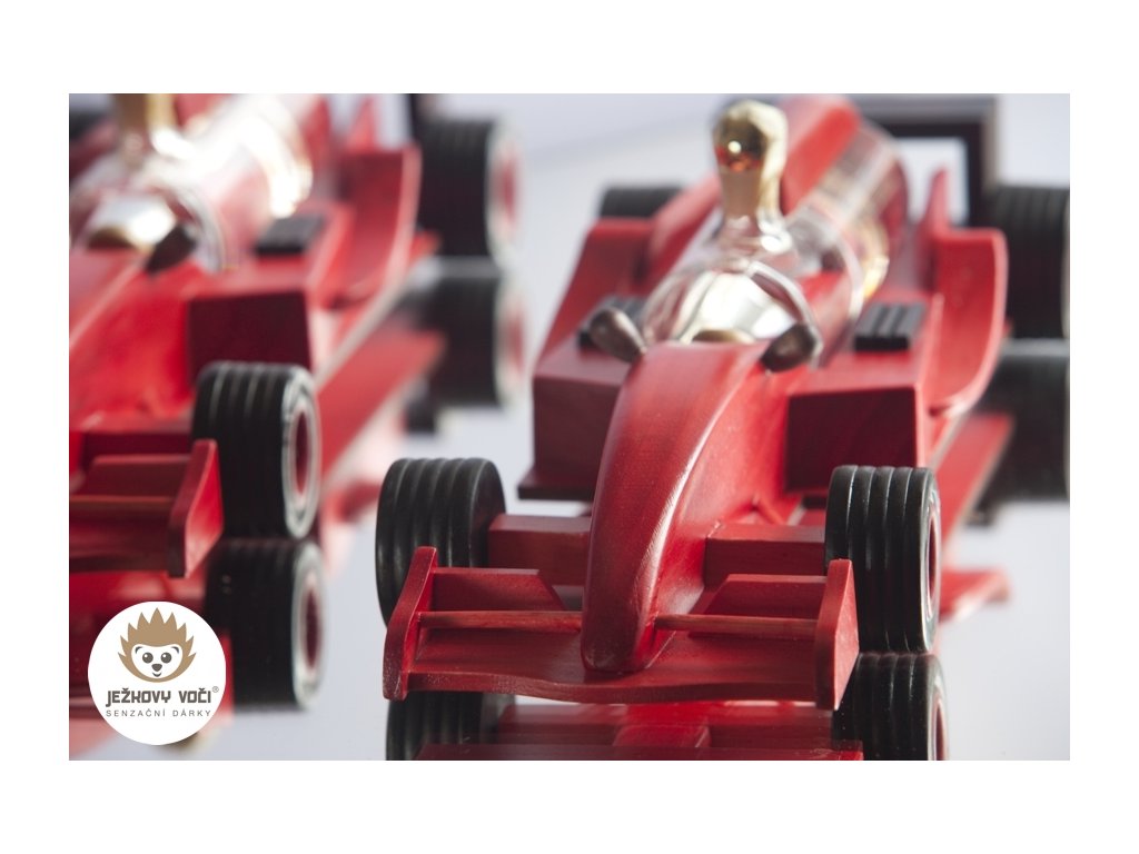 Darujte jedinečný zážitek spojený s vášní pro rychlost a závodní adrenalin ! Skleněná láhev zasazená do červené dřevěné formule F1 je ideálním dárkem pro fanoušky motoristického sportu, Tento exkluzivní produkt propojuje eleganci českého sklářského umění s duchem závodních okruhů. Věnujte tento symbol vítězství a oslavte společně každý úspěch stylově - stejně jako na stupních vítězů.