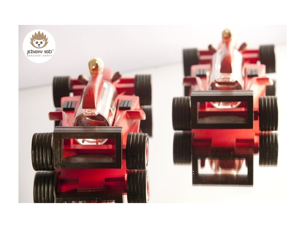 Darujte jedinečný zážitek spojený s vášní pro rychlost a závodní adrenalin ! Skleněná láhev o objemu 0,2 l je naplněná 40% švestkou a zasazená do červené dřevěné formule F1 je ideálním dárkem pro fanoušky motoristického sportu, Tento exkluzivní produkt propojuje eleganci českého sklářského umění s duchem závodních okruhů. Věnujte tento symbol vítězství a oslavte společně každý úspěch stylově - stejně jako na stupních vítězů.