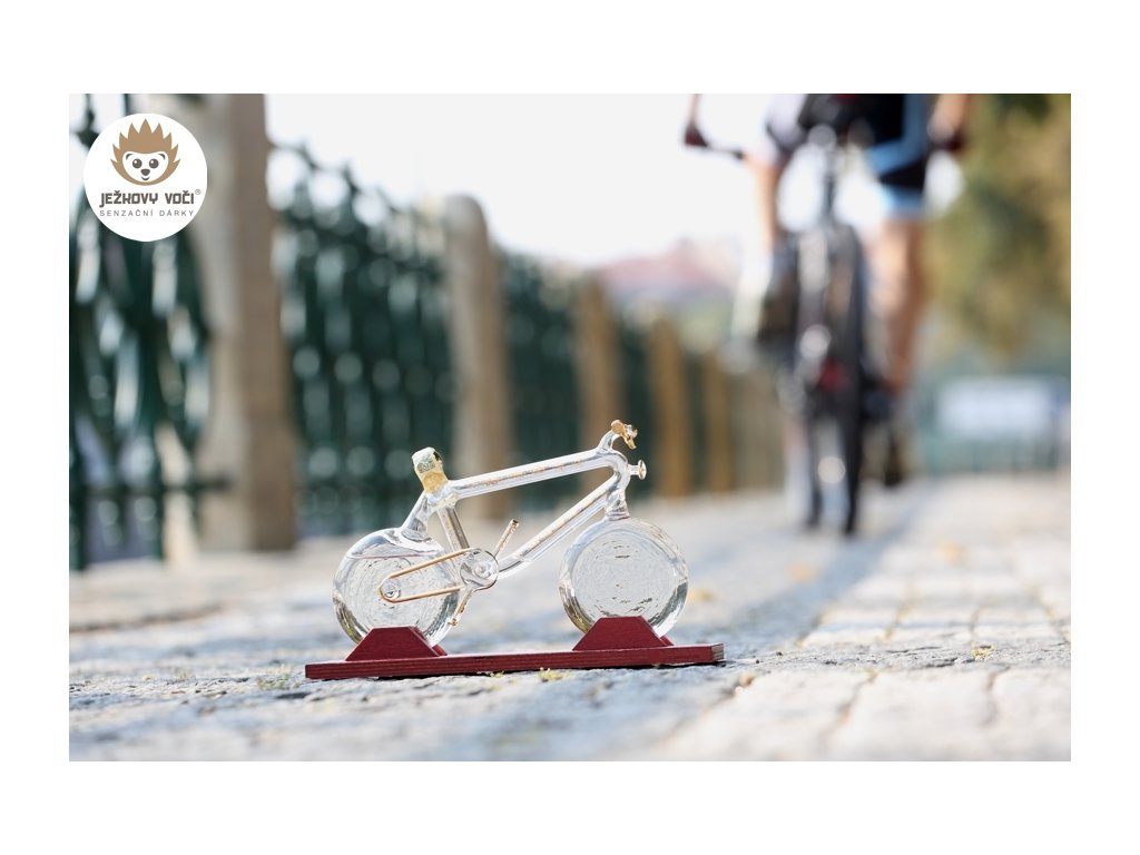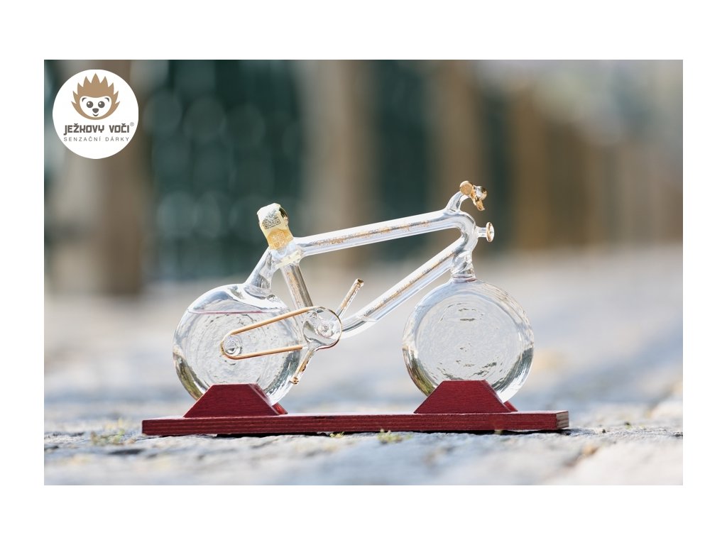 Toto skleněné kolo s rovnými řídítky o objemu 0,2 l naplněné 40% švestkovým destilátem, ozdobené jemnými pozlacenými prvky je dokonalou poctou všem milovníkům cyklistiky. Jeho elegantní linie a precizní zpracování zaujmou na první pohled, zatímco dřevěný stojánek dodává dekoraci stabilitu a přirozený šarm. Pozlacené detaily podtrhují výjimečnost tohoto designového kousku, který oslavuje krásu cyklistického umění. Ideální jako dárek pro nadšence kol nebo jako stylový doplněk, který vnese do interiéru nádech elegance a vášně pro jízdu na dvou kolech.