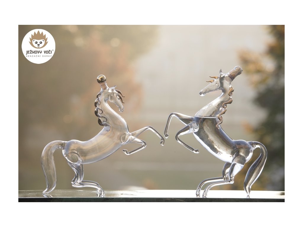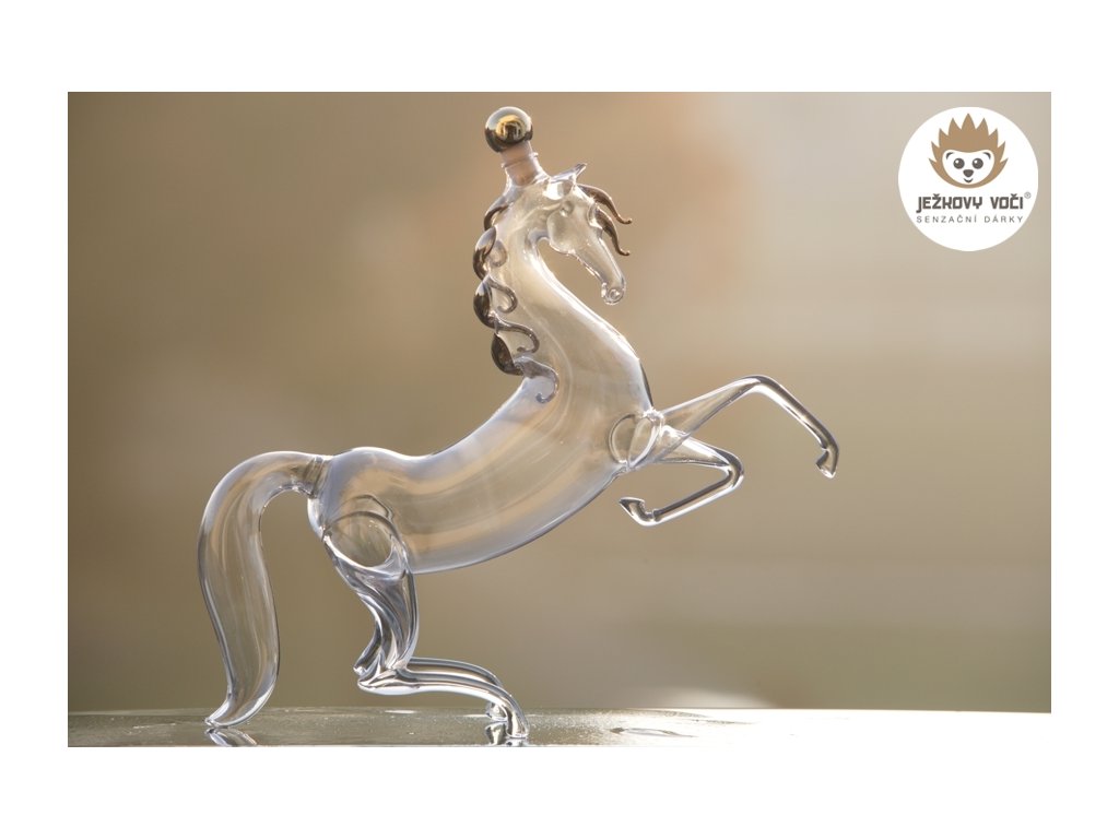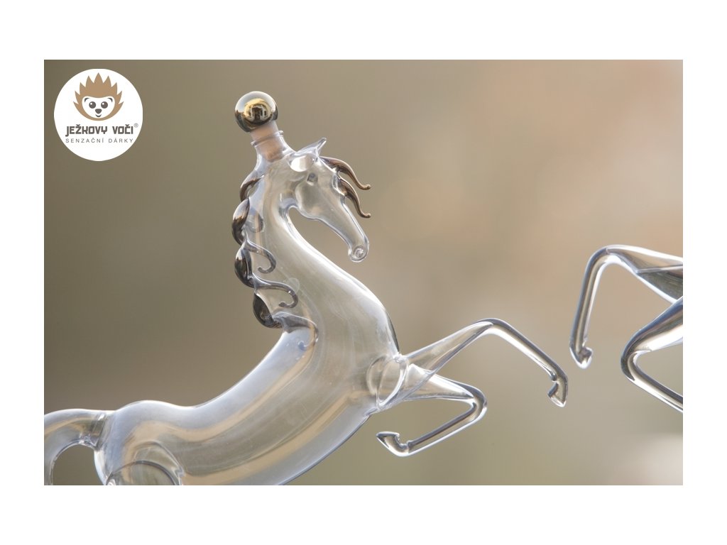 EXKLUZIVNÍ SKLENĚNÁ LÁHEV VE TVARU VZPÍNAJÍCÍHO SE KONĚ SE ZLACENOU HŘÍVOU