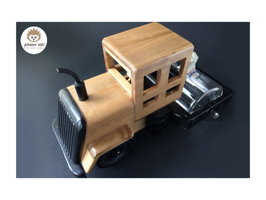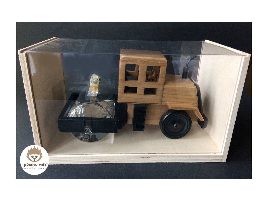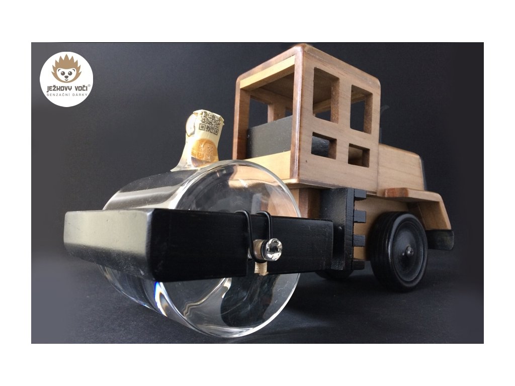 Silniční válec se skleněnou cisternou o objemu 0,2 l, která je naplněna 40% švestkovým destilátem představuje originální a stylový dárek zejména pro milovníky stavební techniky.