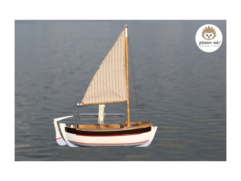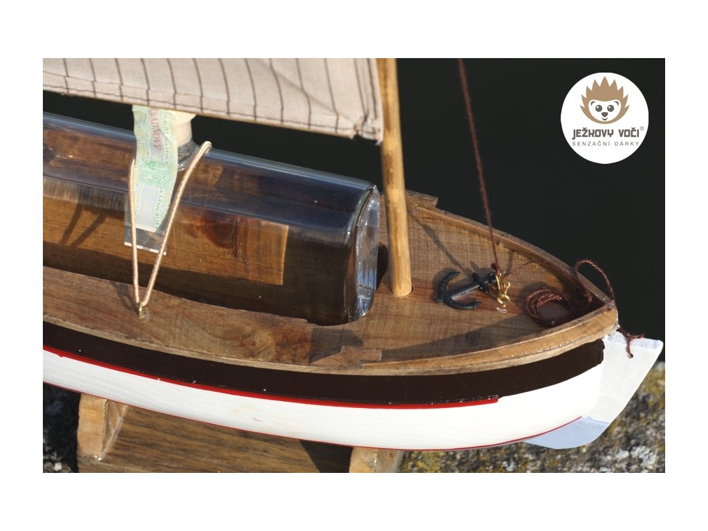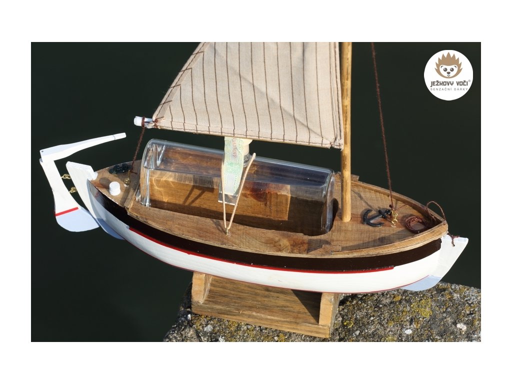 Velká dřevěná plachetnice v elegantní kombinaci bílé a hnědé barvy vás zve na klidnou plavbu plnou pohody. S jedinou látkovou plachtou, která se zdánlivě vznáší ve větru, symbolizuje lehkost a volnost na širém moři. Uprostřed trupu je skleněná cisterna o objemu 0,2 l, naplněná kvalitním 40% švestkovým destilátem, který přidává této dekoraci chuťový a aromatický rozměr. Tento stylový kousek je dokonalou kombinací tradice, námořního šarmu a gurmánského požitku, ideální pro chvíle klidu a odpočinku. Skvělý dárek pro milovníky moře i dobrých věcí v životě.