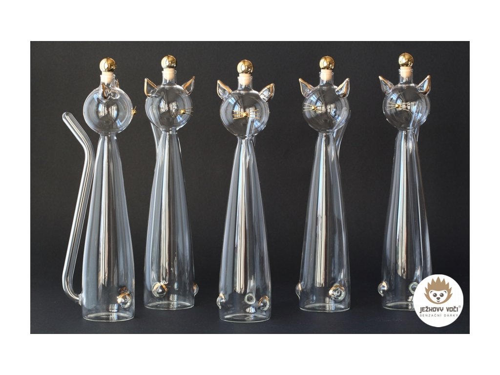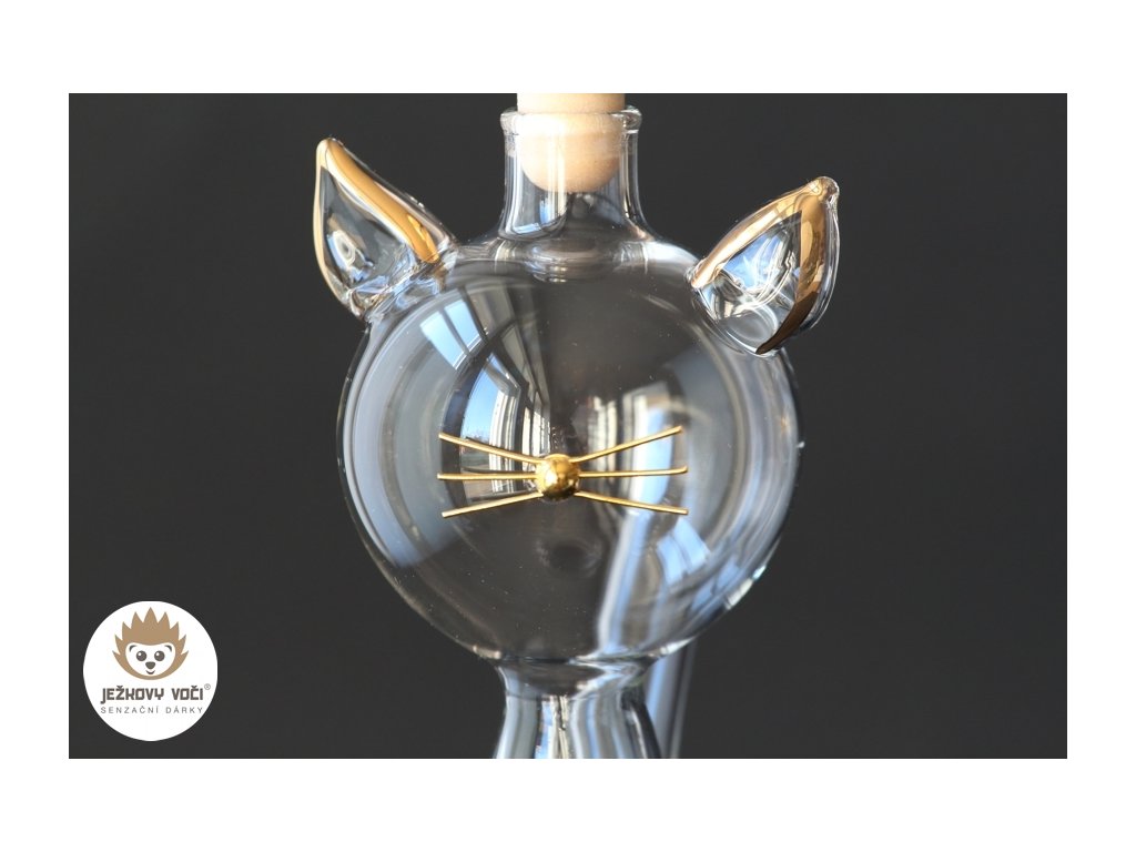Tato výjimečná láhev ve tvaru kočky okouzlí každého milovníka stylu, originality a vytříbeného designu. Precizně zpracovaná se zlacenými prvky, zdobená kovovým pozláceným čumáčkem a jemnými zlacenými fousy, působí jako skutečná šelma mezi dárkovými lahvemi. S objemem 0,35 litru se ideálně hodí pro prémiový likér, destilát nebo jiný nápoj, který si zaslouží být servírován s grácií. Láhev je nejen krásným sběratelským kouskem, ale i luxusním dárkem, který potěší každého se smyslem pro eleganci a špetku hravosti.