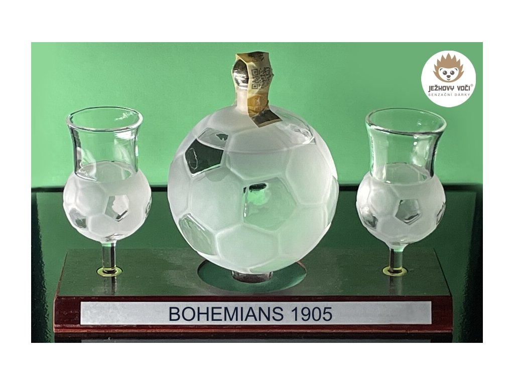 LUXUSNÍ DÁRKOVÁ SADA - FOTBALOVÝ MÍČ A DVA POHÁRKY - BOHEMIANS 1905 - S ALKOHOLEM 40% ŠVESTKA