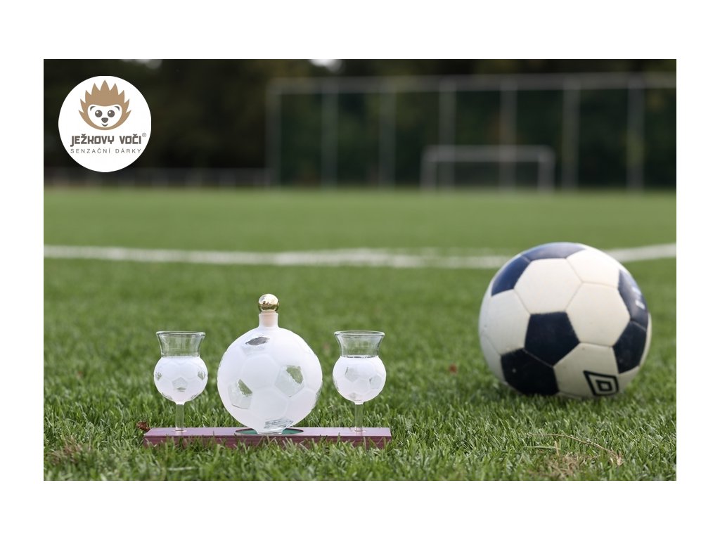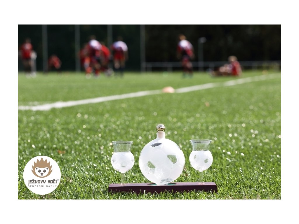 Exkluzivní sada pro pravé fanoušky! Tato luxusní sada na alkohol obsahuje stylovou skleněnou láhev ve tvaru fotbalového míče o objemu 0,35 l a dva elegantní pohárky na stopce, ideální pro slavnostní přípitek při sledování zápasů. Vše je umístěno na precizně zpracovaném dřevěném stojánku, který podtrhuje jedinečný charakter tohoto setu. Skvělý dárek pro každého fanouška, který chce oslavit vítězství svého týmu stylově!
