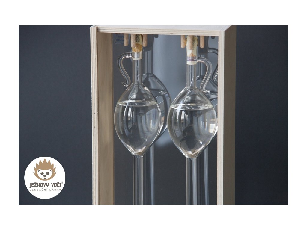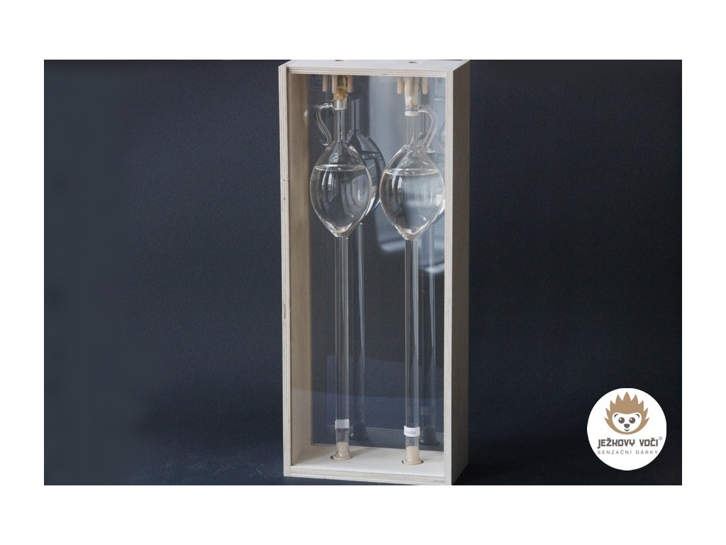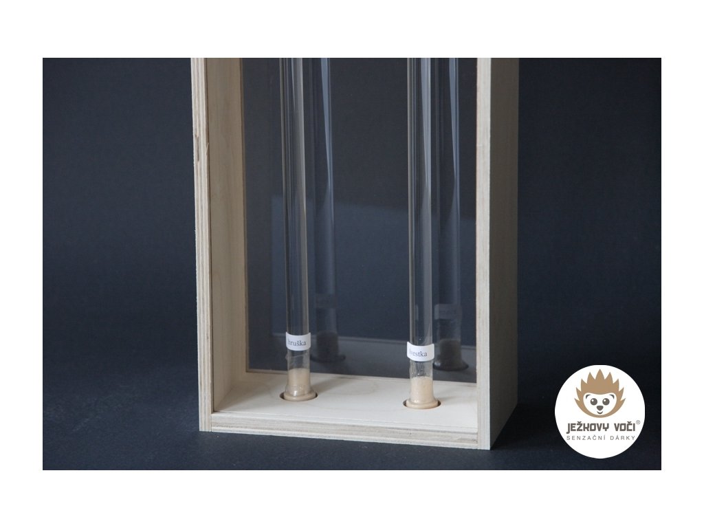 Luxusní sada dvou skleněných koštýřů o objemu 2 x 0,2 l přináší to nejlepší z ovocného světa - jeden naplněný jemnou hruškou, druhý výraznou švestkou. Oba jsou uloženy v pečlivě zpracované dřevěné bedýnce, která zajišťuje nejen stabilitu, ale i elegantní prezentaci. Ideální dárek pro milovníky tradičních chutí, kteří vědí, že dobrý košt má svůj čas, vůni i duši.