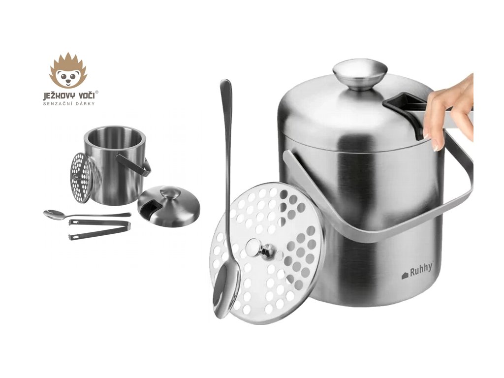 Nerezová sada na led s kbelíkem, lžící a kleštěmi - ideální doplněk pro každého milovníka chlazených nápojů! Vyrobeno z vysoce kvalitní nerezové oceli pro dlouhou životnost a snadnou údržbu.