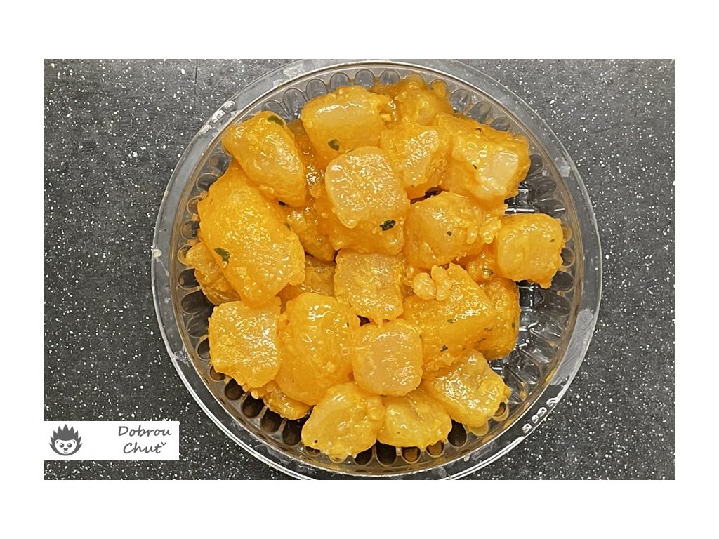 - 541 kJ/127 kcal, tuky: 0,5 g, z toho nasyc.mastné kyseliny: 0,3 g, sacharidy: 2,6 g, z toho cukry: ˂0,4 g, bílkoviny: 28 g, sůl: 4,5 g