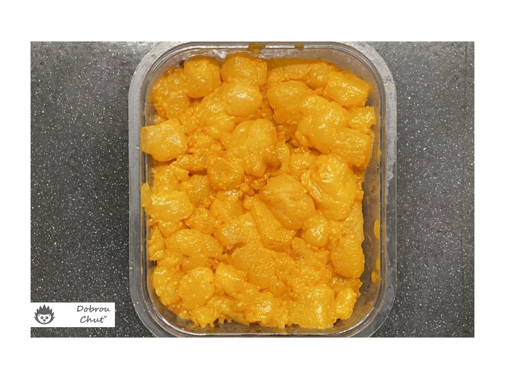 - 541 kJ/127 kcal, tuky: 0,5 g, z toho nasyc.mastné kyseliny: 0,3 g, sacharidy: 2,6 g, z toho cukry: ˂0,4 g, bílkoviny: 28 g, sůl: 4,5 g