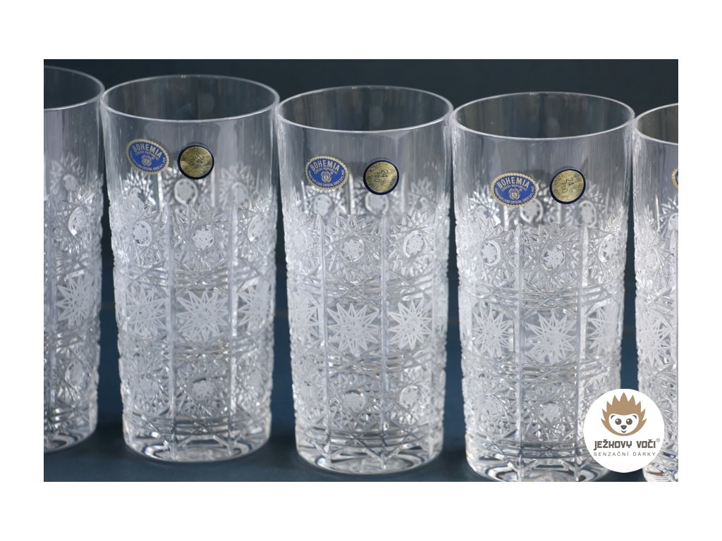 RUČNĚ BROUŠENÉ SKLENIČKY NA NEALKOHOLICKÝ NÁPOJ Z OLOVNATÉHO KŘIŠŤÁLU CRYSTAL BOHEMIA - KLASIK - 6 ks