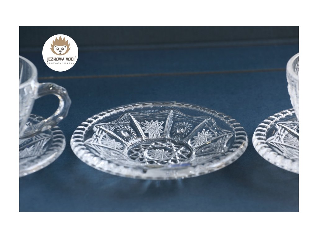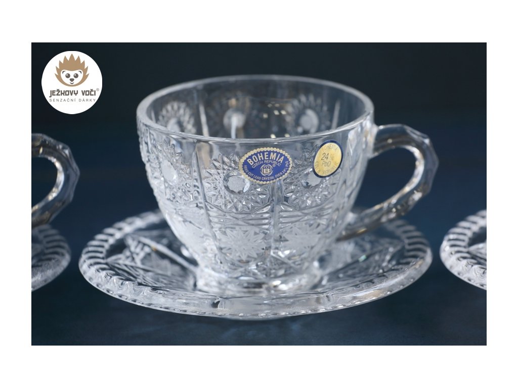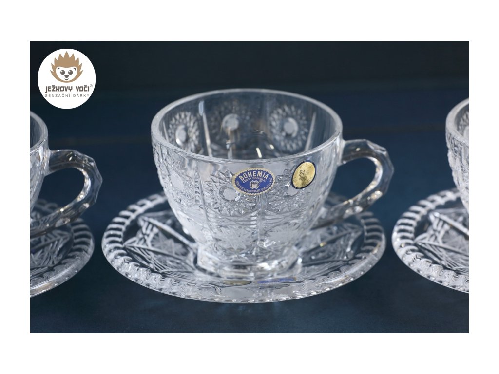 RUČNĚ BROUŠENÝ ŠÁLEK S PODŠÁLKEM NA ČAJ Z OLOVNATÉHO KŘIŠŤÁLU CRYSTAL BOHEMIA - 6 KUSŮ