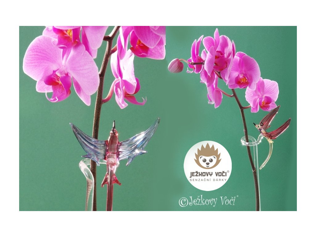 SKLENĚNÝ DRŽÁK ORCHIDEJE - KOLIBŘÍK