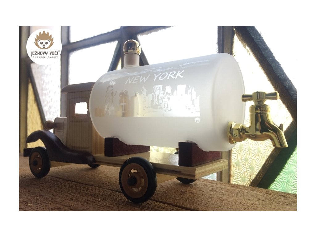 SUVENÝR - CISTERNA PLNÁ STYLU - DŘEVĚNÉ AUTO S KOHOUTKEM A NEW YORKEM
