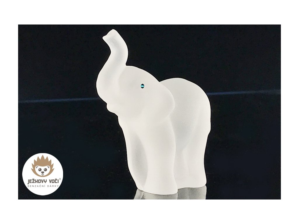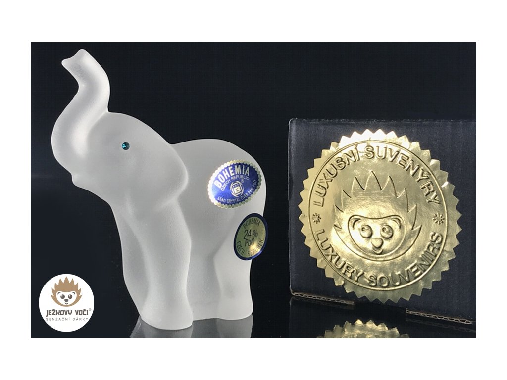 SUVENÝR - FIGURKA Z OLOVNATÉHO KŘIŠŤÁLU CRYSTAL BOHEMIA - SLONÍK PRO ŠTĚSTÍ SE SWAROVSKI KRYSTALEM - MATNÝ