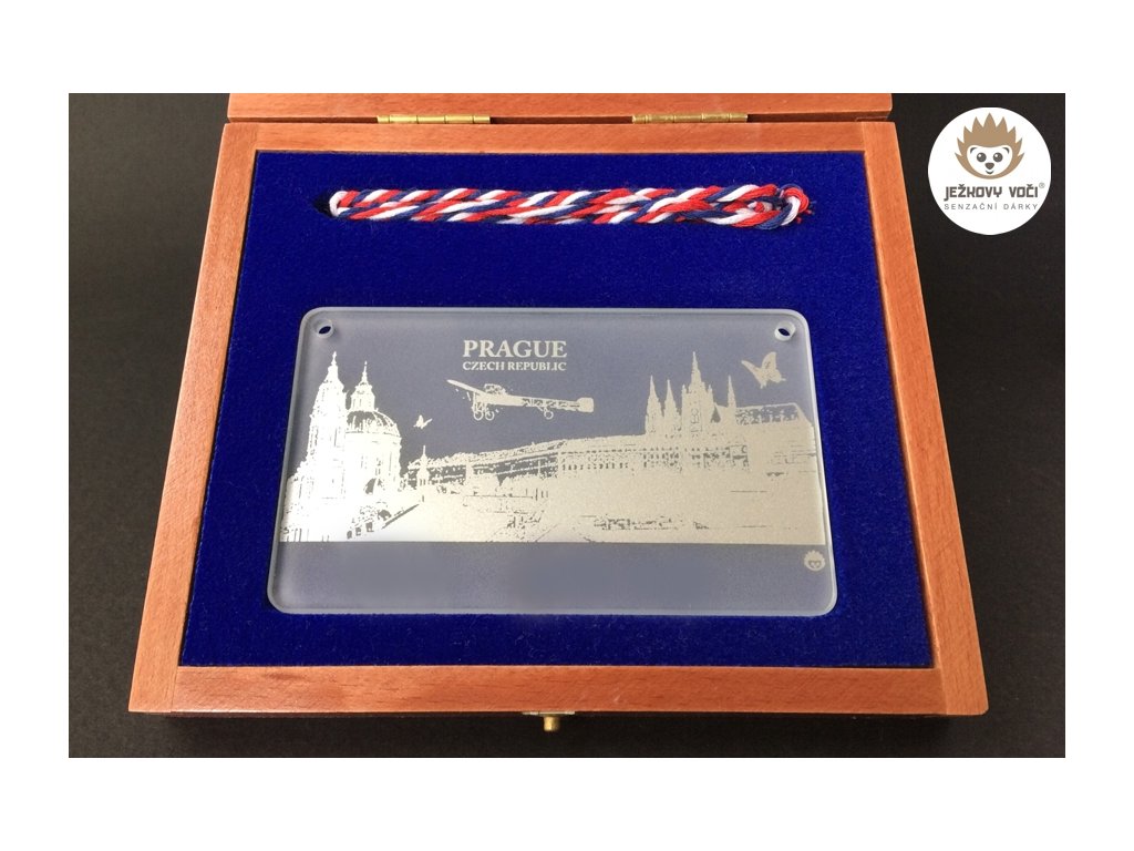 SUVENÝR - LUXUSNÍ OBRÁZEK NA SKLE VE DŘEVĚNÉ KAZETĚ - PRAGUE/CZECH REPUBLIC - BARVA STŘÍBRNÁ