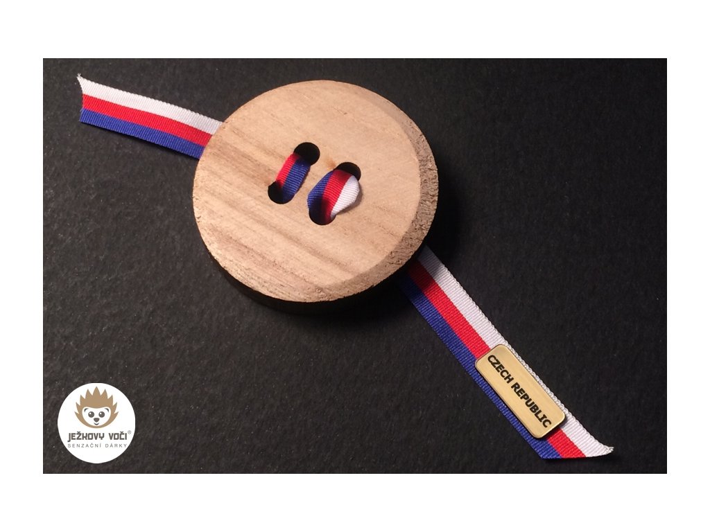 Originální dřevěný knoflík, který nosí štěstí - tentokrát v podobě stylové magnetky. Dírkami je symbolicky provlečená česká trikolóra, která dodává celému kousku vlastenecký i osobní nádech. Na zadní straně je umístěn magnet, takže knoflík snadno přichytíte na lednici, tabuli nebo jiný kovový povrch.