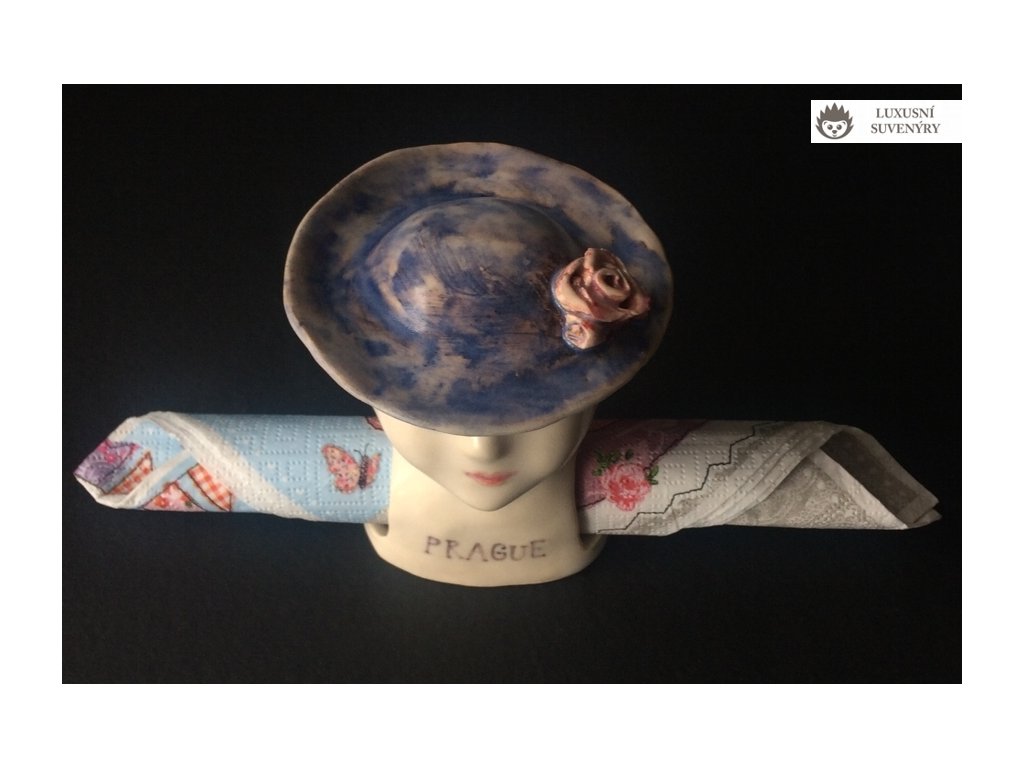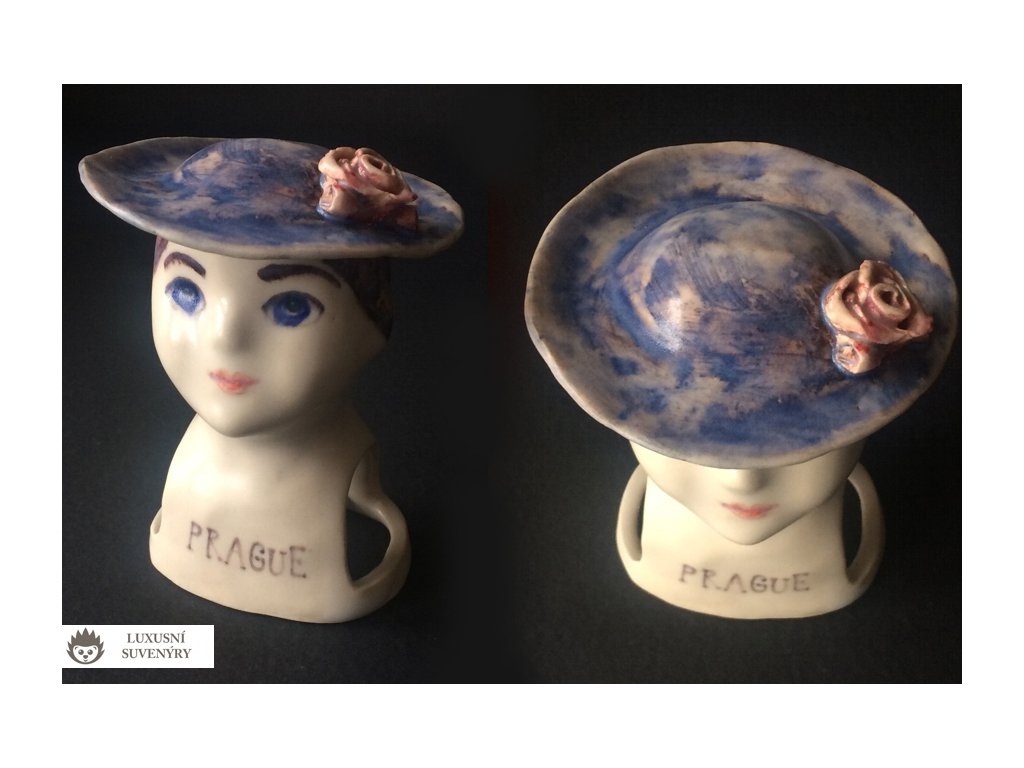 SUVENÝR PRAGUE - ORIGINÁLNÍ KERAMICKÝ STOJÁNEK NA UBROUSKY - ELEGANTNÍ DÁMA