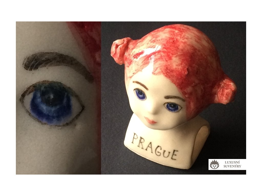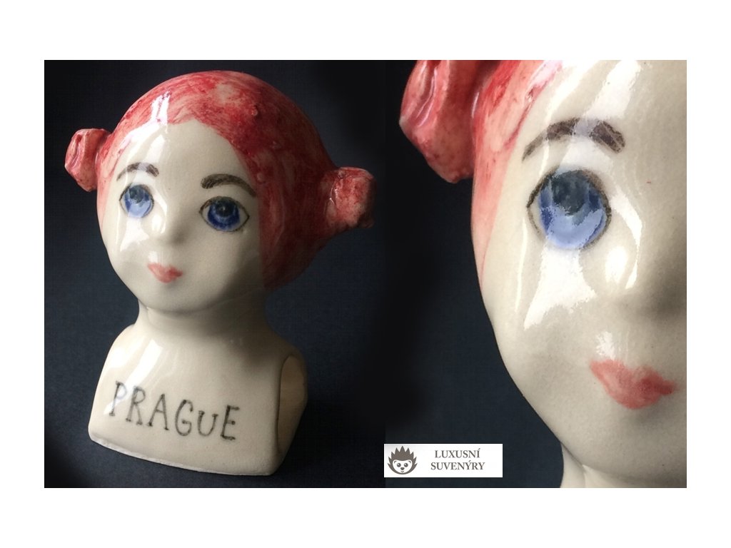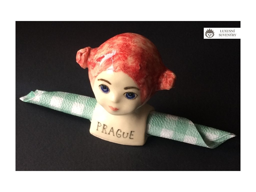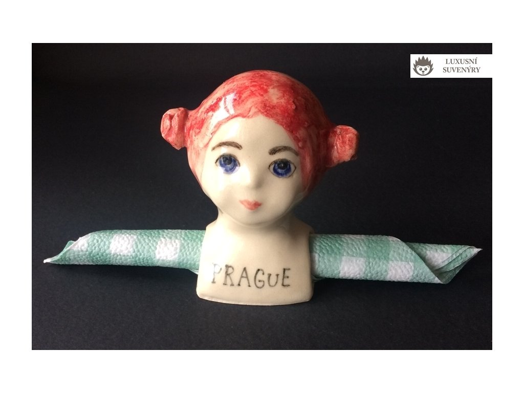 SUVENÝR PRAGUE - ORIGINÁLNÍ KERAMICKÝ STOJÁNEK NA UBROUSKY - ROZTOMILÁ HOLKA