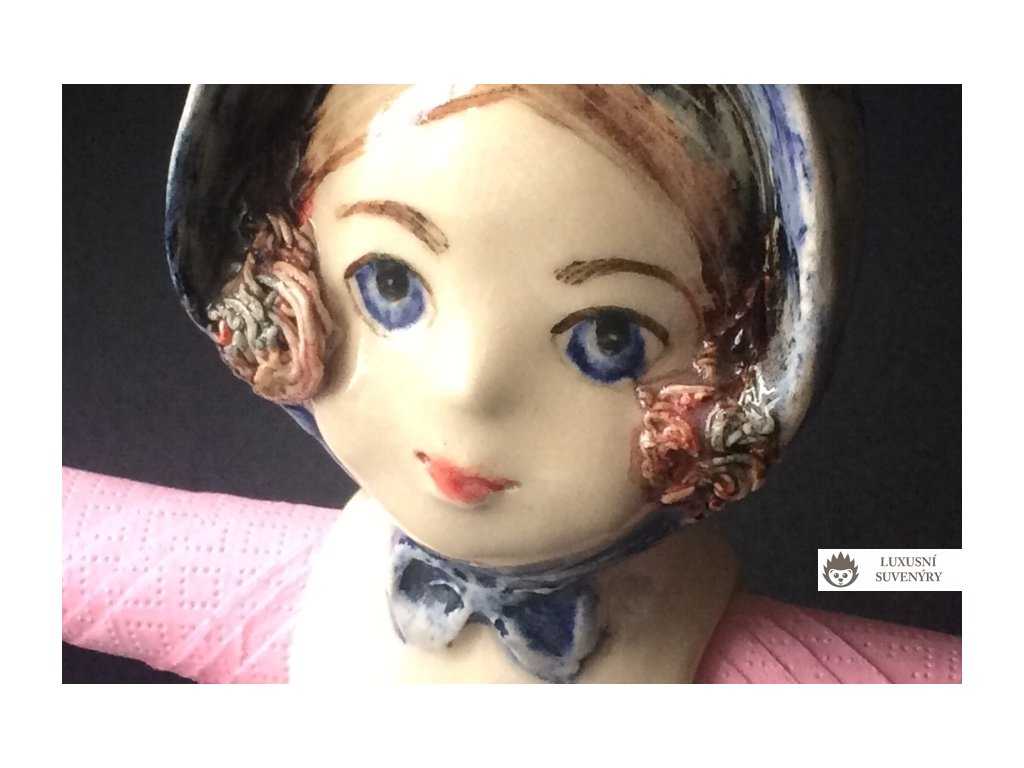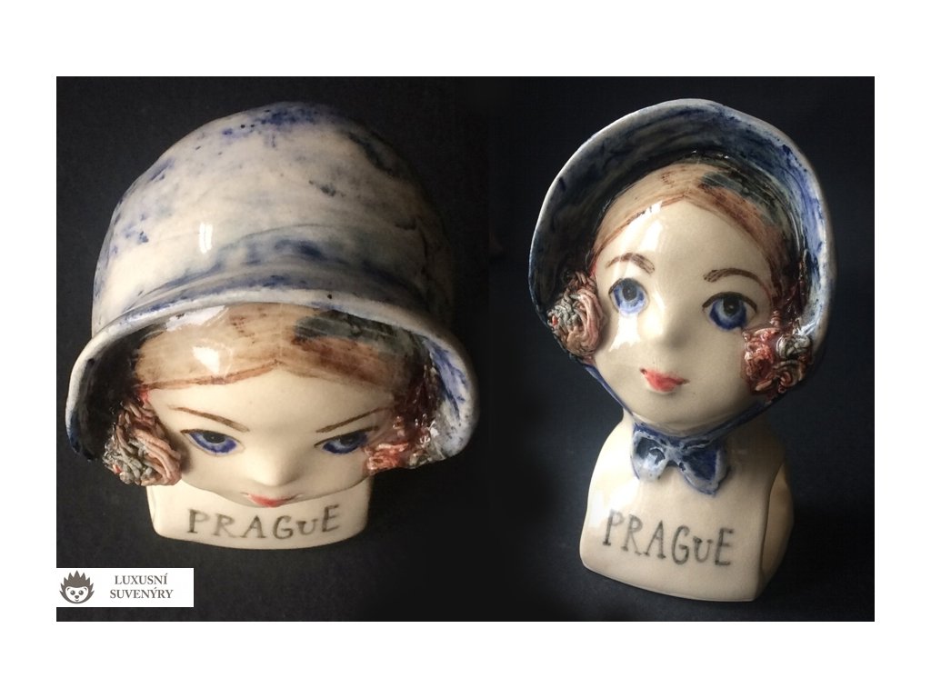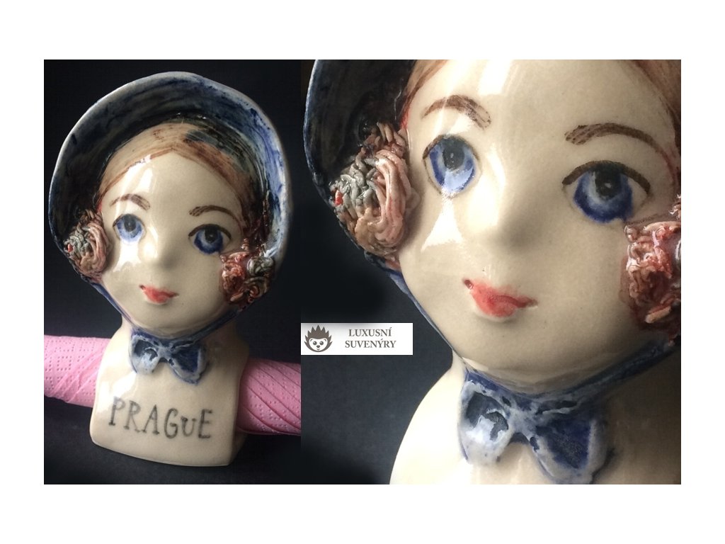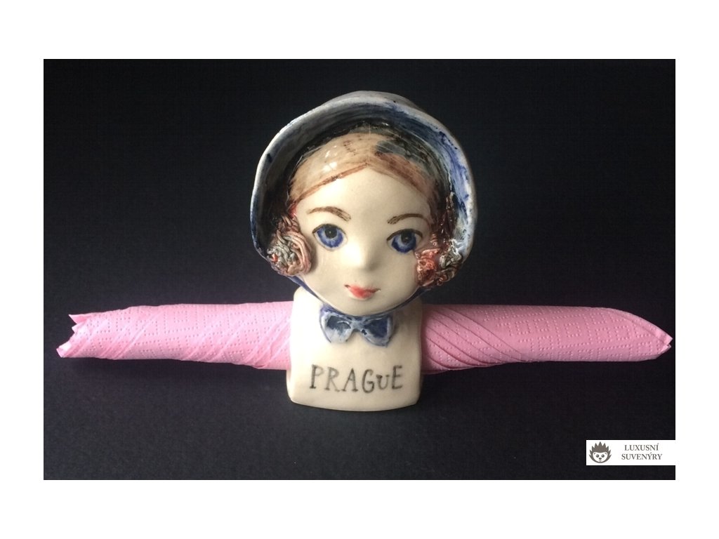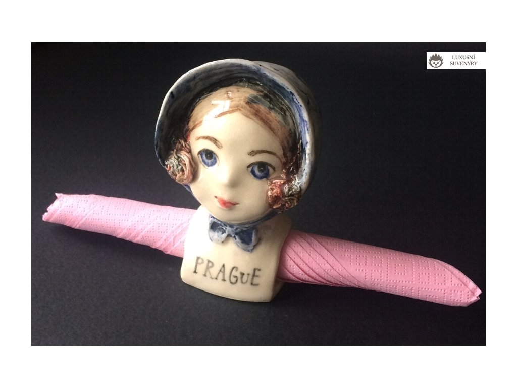 SUVENÝR PRAGUE - ORIGINÁLNÍ KERAMICKÝ STOJÁNEK NA UBROUSKY - STAROPRAŽSKÁ DÁMA