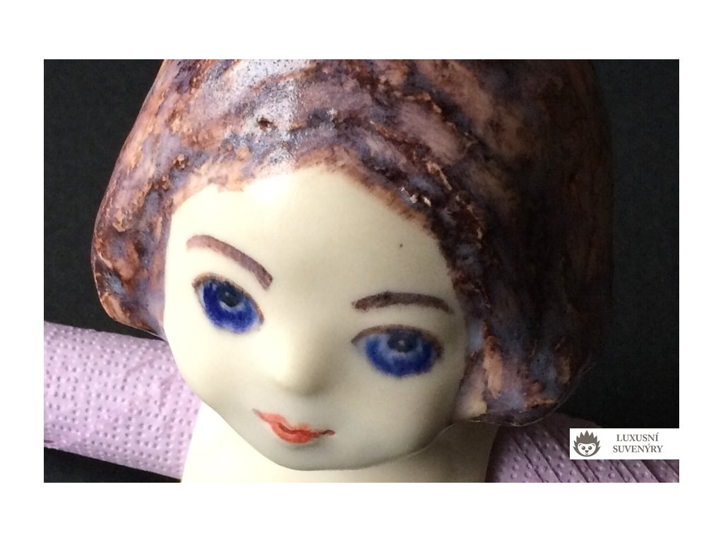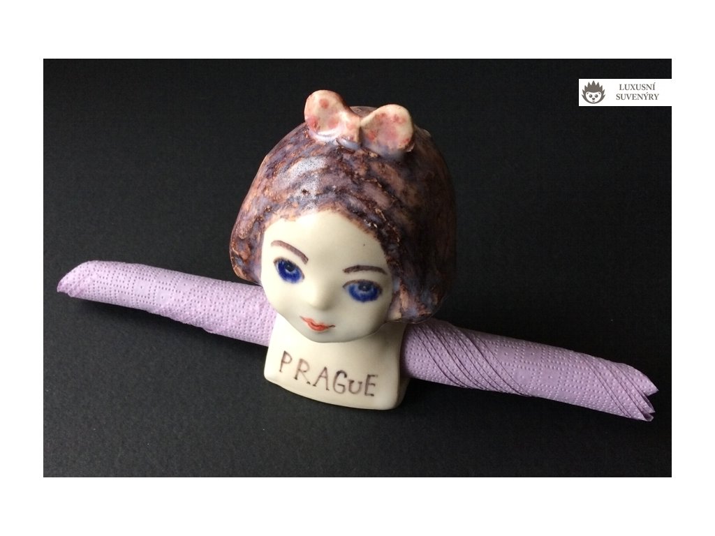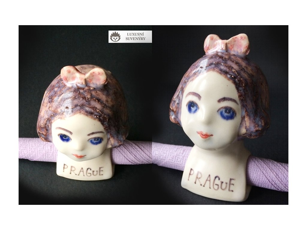 SUVENÝR PRAGUE - ORIGINÁLNÍ KERAMICKÝ STOJÁNEK NA UBROUSKY - ZASNĚNÁ DÍVKA