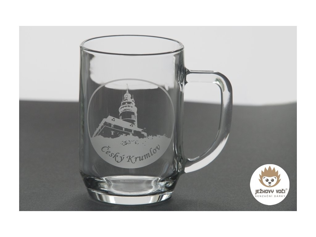Elegantní skleněný půllitr s jemně pískovaným motivem Českého Krumlova. Precizní zpracování a čistý design dělají z tohoto půllitru nejen praktický doplněk, ale i reprezentativní suvenýr nebo stylový dárek.