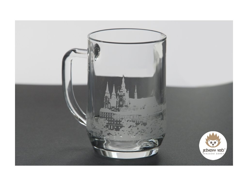 Rozměry: Výška 140 mm Průměr 90 mm Objem 0,5 l Pískovaný motiv Prahy se může měnit