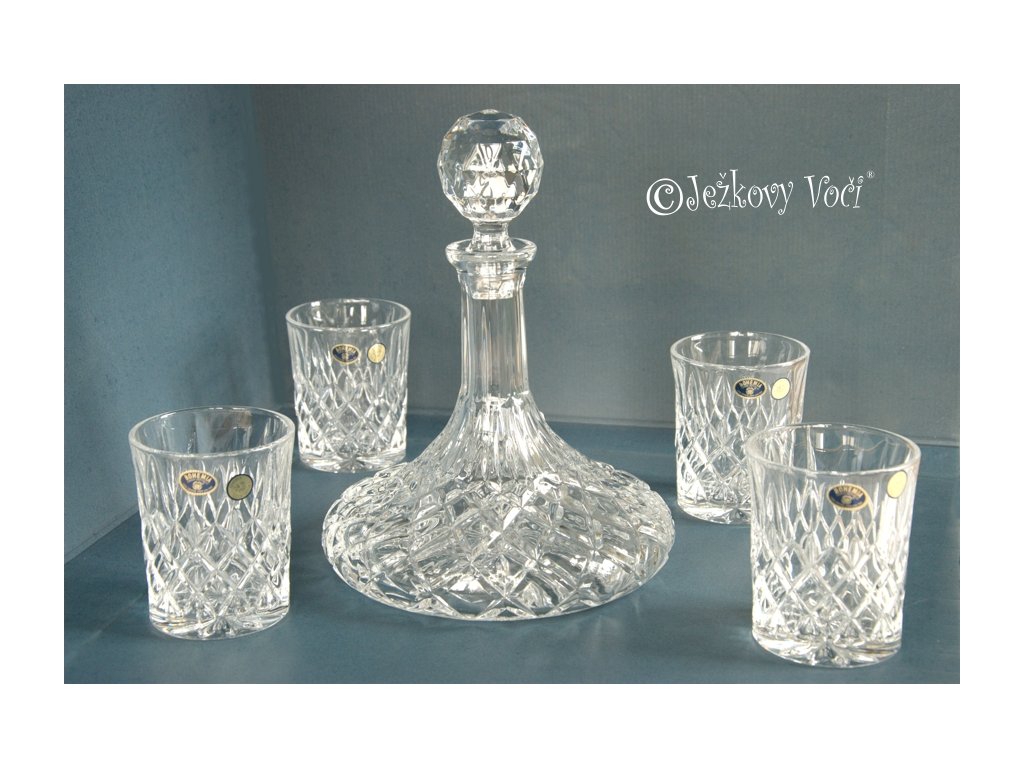 WHISKY SET 1+4 Z OLOVNATÉHO KŘIŠŤÁLU CRYSTAL BOHEMIA - DIAMOND